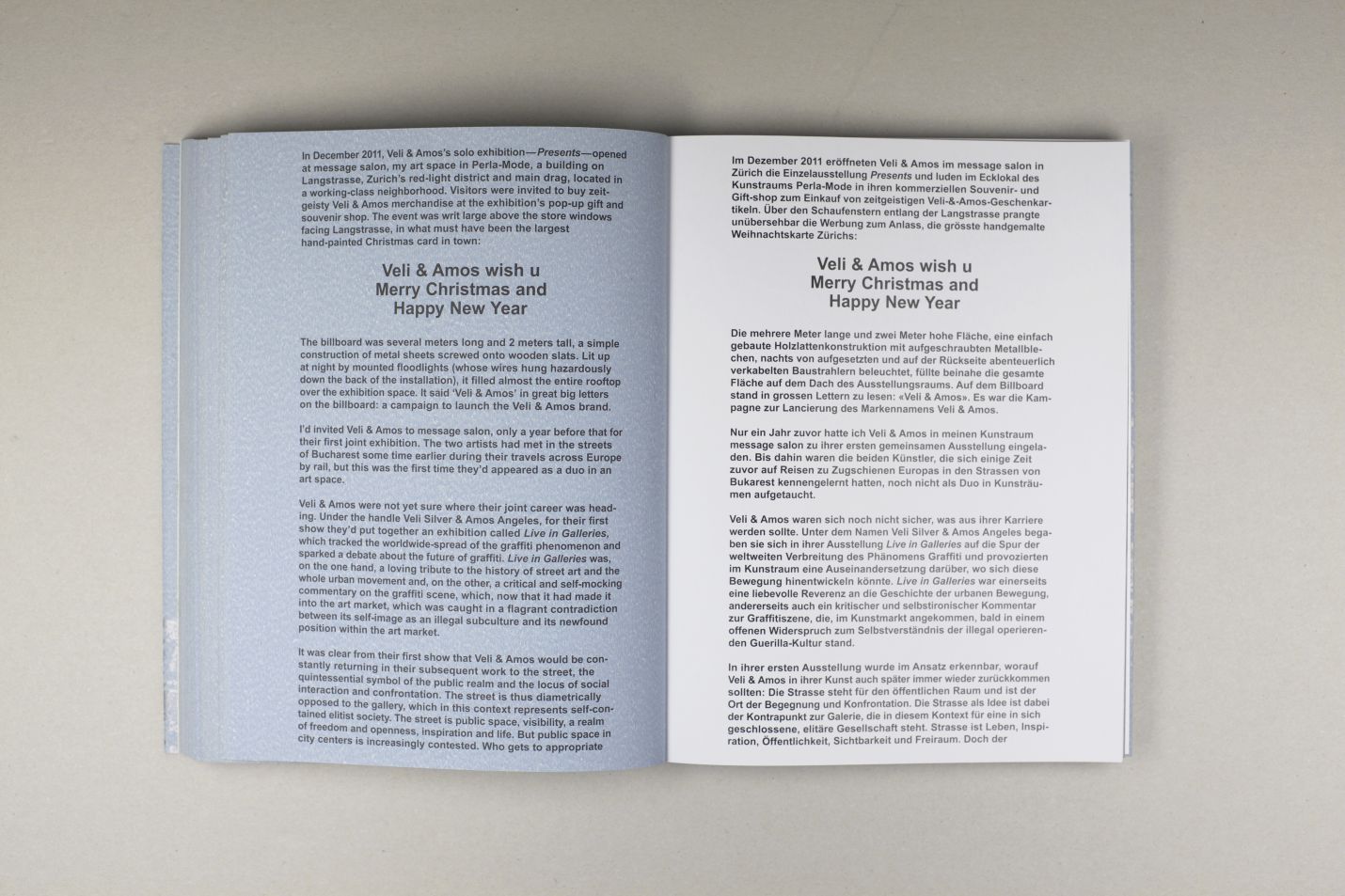 Veli Silver (born 1983 in Banja Luka) studied art in Ljubljana, Porto and Zurich. Amos Angeles (born 1986 in Zurich) studied architecture and art in Zurich. The duo have been working together since 2008.
