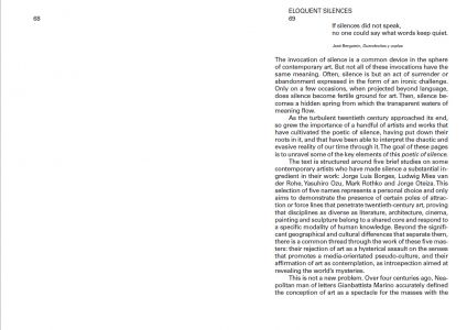 It is a form of spiritual revolt that Carlos Martí Arís highlights through this transversal analysis of different artistic expressions that mix and meet to enrich his reflection. The key words of this consideration, which has the appearance of a manifesto, are: silence, contemplation, renunciation, transparency, anonymity and atemporality. Twenty years later, the lesson of Carlos Martí Arí is contemporary and of fundamental importance for our discipline today