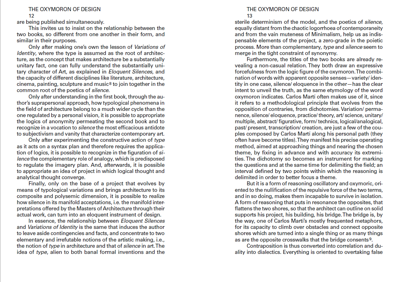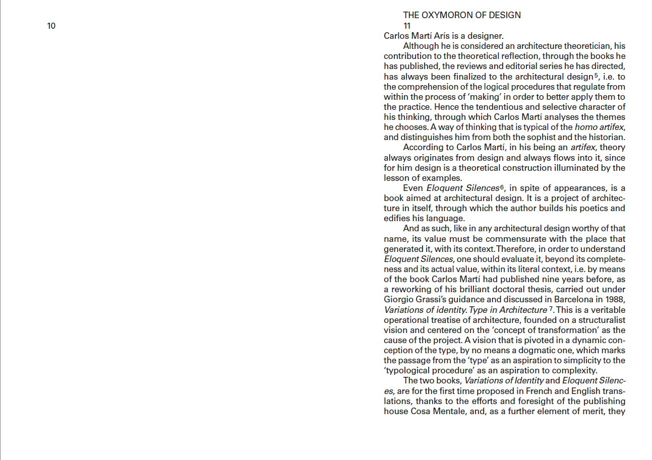 Carlos Martí Arís (Barcelona, 1948-Barcelona 2020) was an architect and full professor at the Departamento de Proyectos Arquitectónicos of the Universitat Politècnica de Catalunya (UPC). Graduated in 1972 from the Escuela Técnica Superior de Arquitectura de Barcelona (ETSAB), his real school was the editorial office of 2c Construcción de la ciudad, of which he was a founding member and deputy editor from 1972 to 1985. 2c Construcción de la ciudad was a magazine in line with Italian culture (La Tendenza) which had succeeded in bringing architecture and the city closer together. Still at ETSAB, he obtained his doctorate in 1988 with a thesis, which became a book entitled Las Variaciones de la identidad. Ensayo sobre el tipo en arquitectura (Milan 1990, Barcelona 1993 and 2014, Paris 2020, FAD Pensamiento y Crítica 2015 Award), the discourse of which leads from “type” as the foundation of architecture to “typological process” as a design method. He has developed—often in parallel and coherent with his professional activity—a vast theoretical reflection, through numerous articles and conferences. He is the author of several books including Las Formas de la residencia en la ciudad moderna (Barcelona 1991); Santiago de Compostela. La Ciudad histórica como presente (Barcelona 1995); Silencios elocuentes (Barcelona 1999, Milan 2002, Paris 2019/2020); La Cimbra y el arco (Barcelona 2005, Milan 2007); La Arquitectura del cine. Estudios sobre Dreyer, Hitchcock, Ford y Ozu (Barcelona 2008, FAD Pensamiento y Crítica Award 2009); Cabos sueltos (Barcelona 2012, finalist of Pensamiento y Crítica 2009). He has also promoted editorial initiatives such as the Arquitectura / Teoría series of Serbal editions, the Arquítesis series of the Fundación Caja de Arquitectos and the magazine DPA Departamento de Proyectos de Arquitectura of the UPC, of which he was editor. In 2014, he was awarded the title of “Magister Honoris Causa” by the ETSAB of UPC for the excellence and commitment expressed in his academic career, followed by a publication (Carlos Martí Arís, Magister Honoris Causa, Barcelona 2016). Within the framework of the ADF 2015 Awards, he receives the honorary prize of the jury awarded on the occasion of the re-edition of his doctoral thesis.