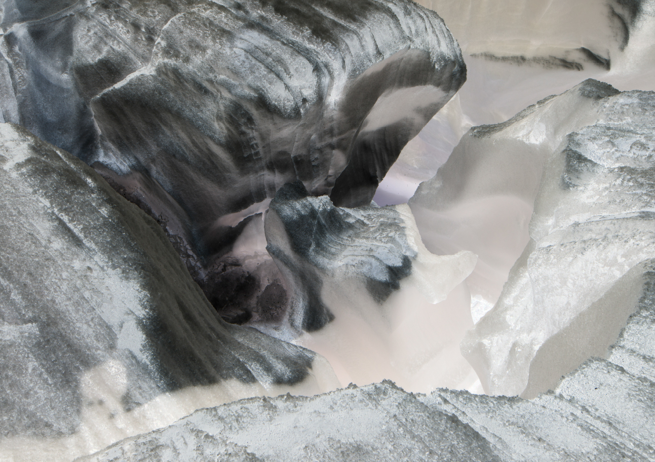 The Aletsch glacier is the largest glacier of the Alps. Glaciologists predict that by the end of this century most glaciers in the Alps will have completely disappeared and only bits of Aletsch will remain. With Aletsch Negative, Laurence bonvin proposes an intimate, sensory photographic experience that troubles and questions our perception of colour, spatial and temporal scales as well as our own relation to the ice giant and its future, so linked to ours. Journey to the belly of the glacier.