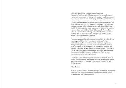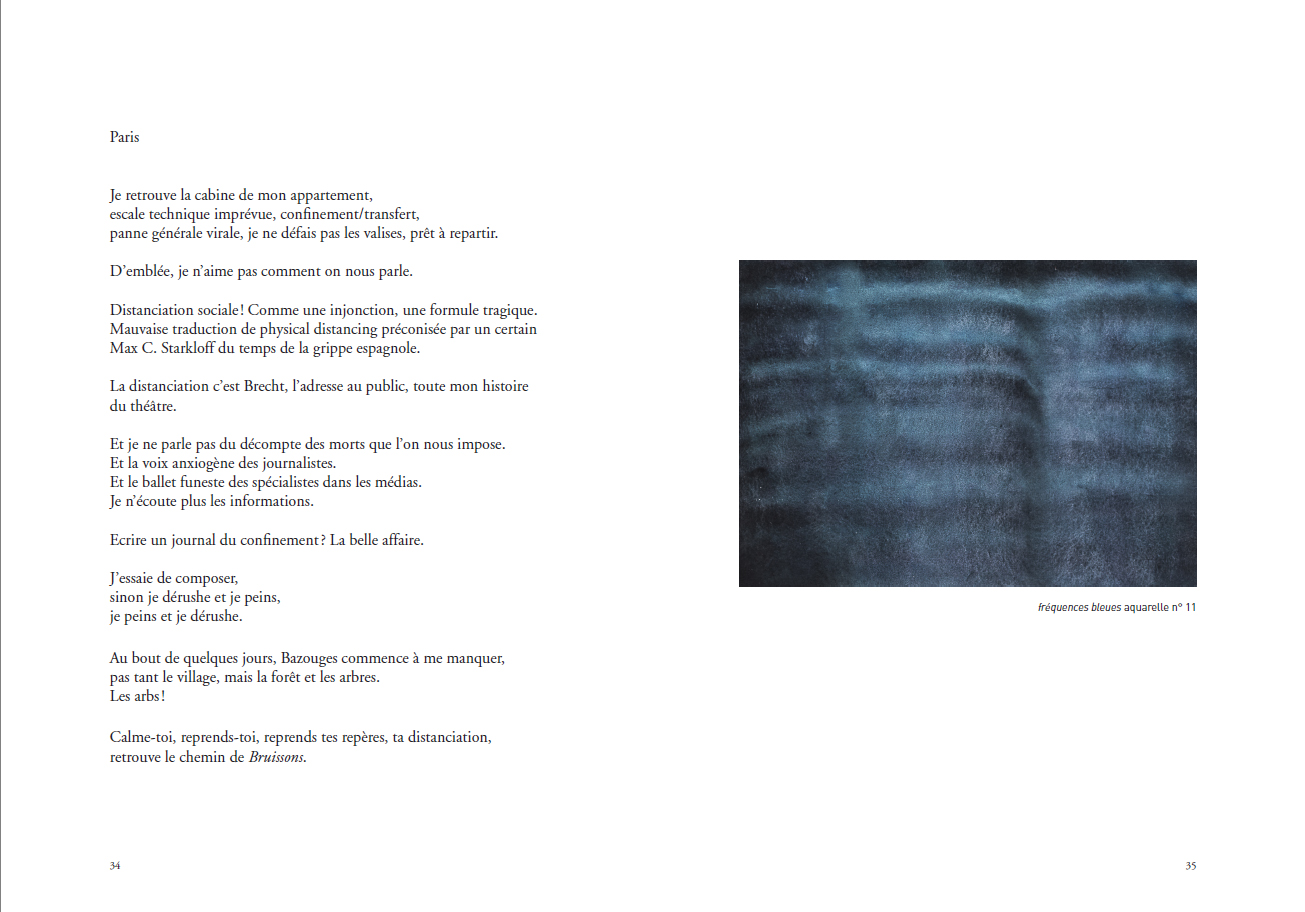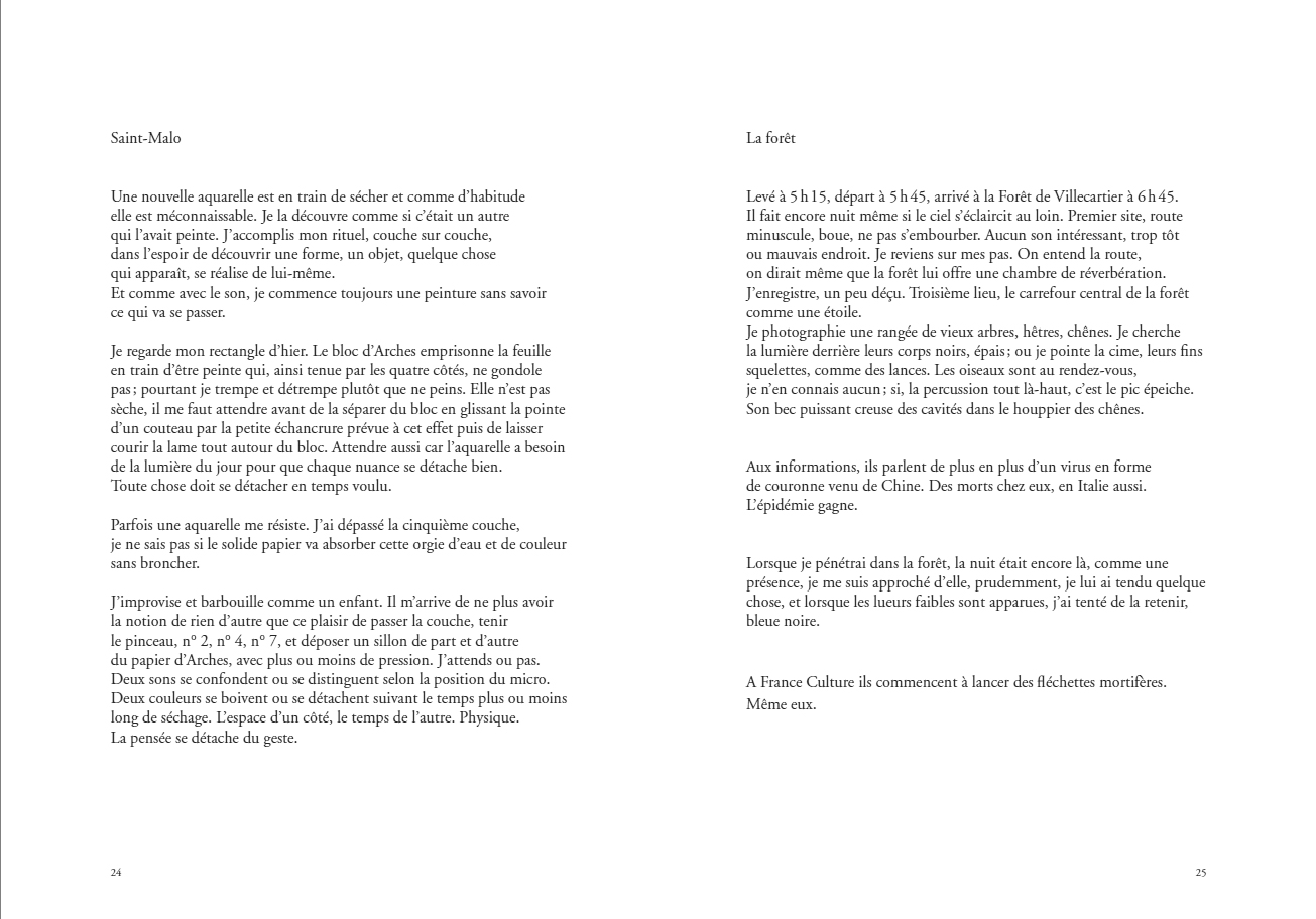 A village, its people, nine characters, some children, a forest. Three seasons : winter, lockdown an spring. Bruissons is the tale of a motionless journey, slightly disrupted. An exhibition – pictures, sounds. And a book.