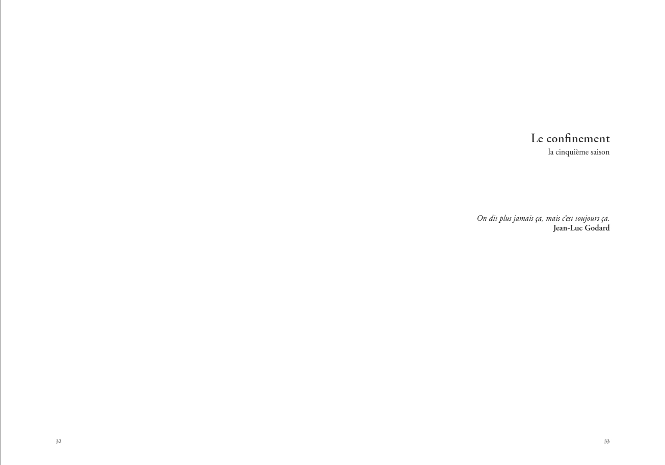 It will not have escaped anyone's notice that the year 2020 is not panning out as expected. Winter was not yet over when we felt a quivering. Not a quivering of spring, with the first buds and first sweet smells. A quivering from beyond, of another kind, of another fear, from an other world. A virus which seeps in, terrifies, kills ans stops everything in its wake. Lockdown. A no man's time, a fifth season, without rhyme or reason, a non-season. And then, as if it had elbowed its way towards reappearance, spring arrived at last.