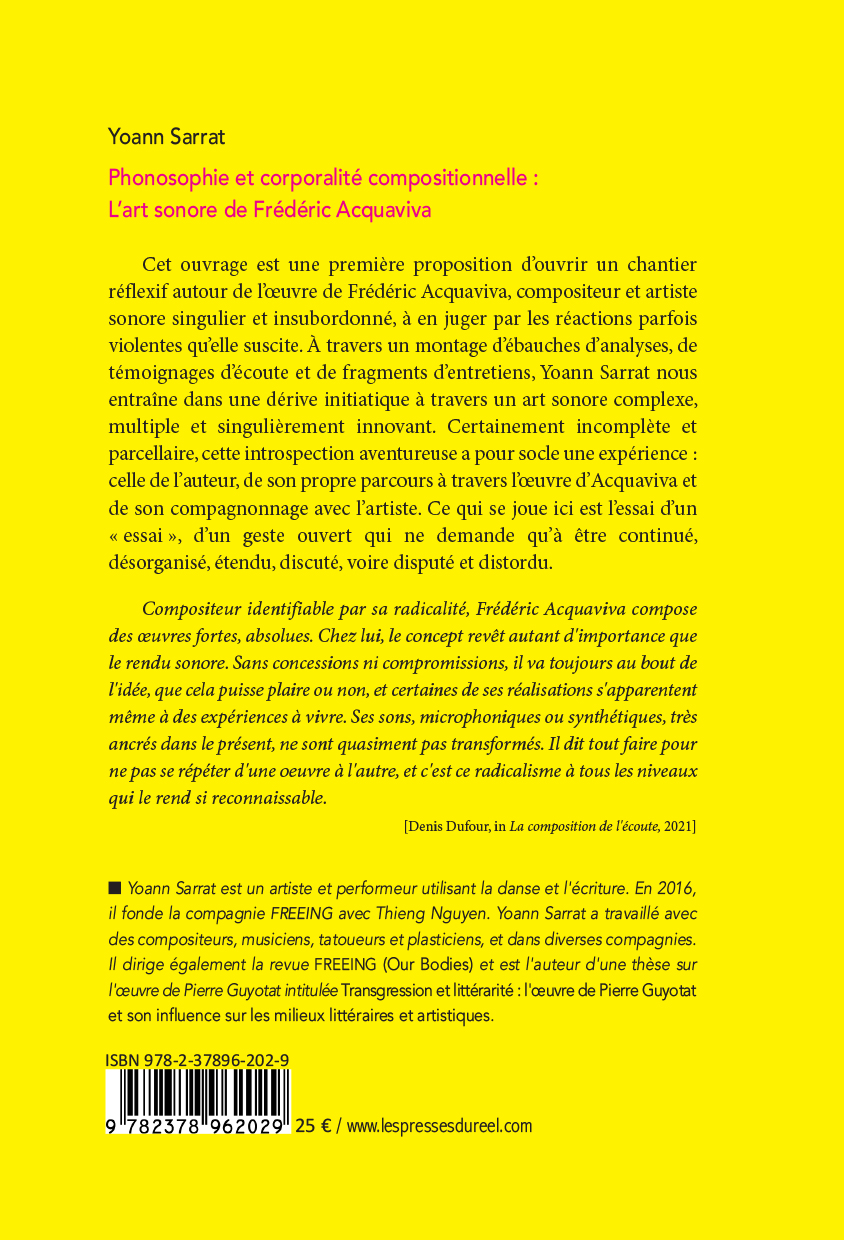 Yoann Sarrat (born 1989) is a French artist and performer using dance and writing. In 2016, he founded the company FREEING with Thieng Nguyen. Yoann Sarrat has worked with composers, musicians, tattoo artists and visual artists, and in various companies. He edits the journal