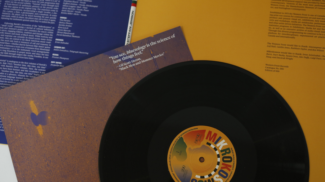 Formed in 2016 as the collaborative platform of composer Justin Hicks and artist Steffani Jemison, Mikrokosmos mines the history of Black music. This ongoing project has manifested in many forms: workshop, study session, concert, listening session, book, prompt, score. “Another time, this time, one time,” the first Mikrokosmos LP, uses Gil Scott-Heron and Brian Jackson's “We Almost Lost Detroit” (1977) as the raw material for R&B songwriting.