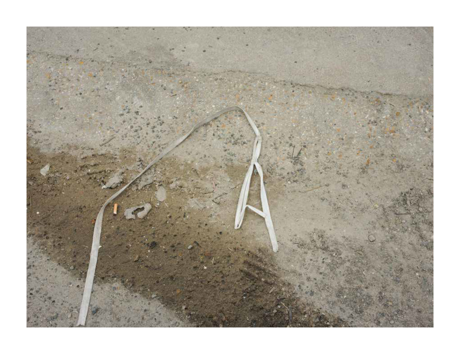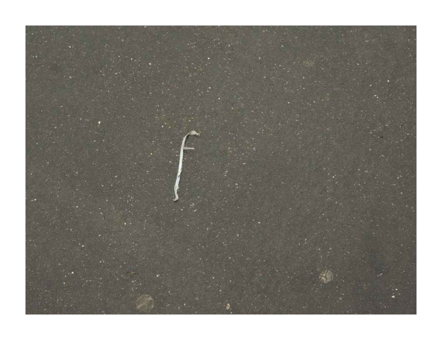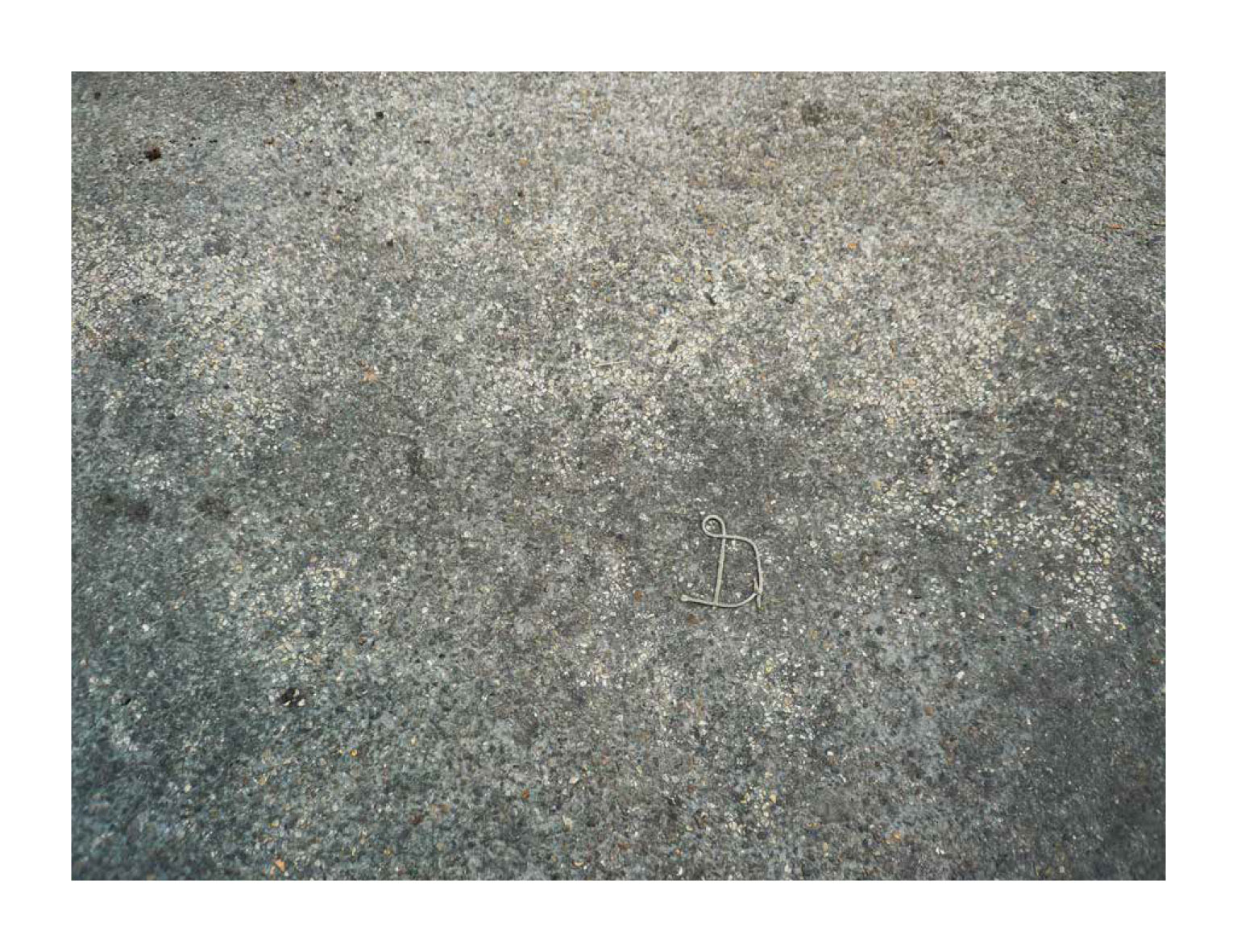 Photographic alphabet according to the encounters of typographic forms found on the ground. A string, a piece of plastic or an old rubber band draws letters on the ground. The artist transforms the hazardous finds into a generous and funny alphabet.