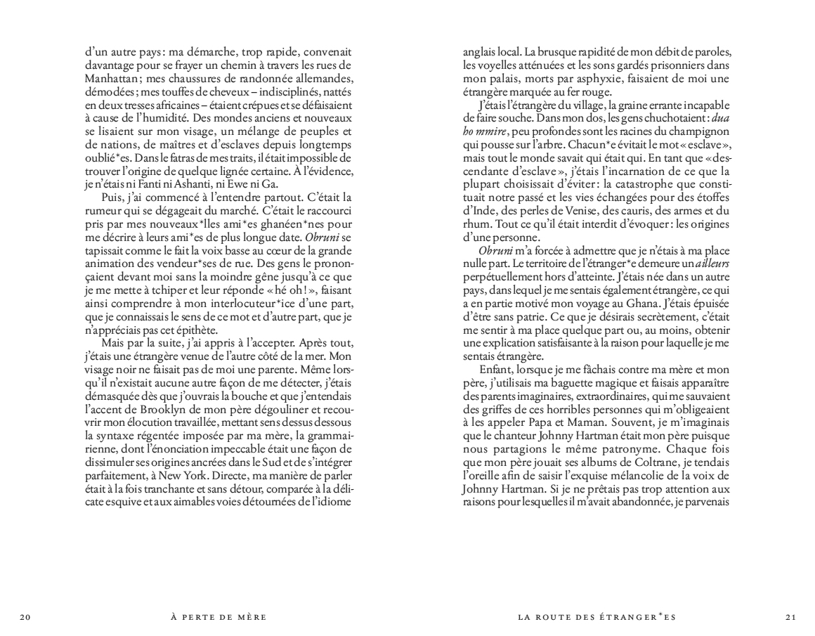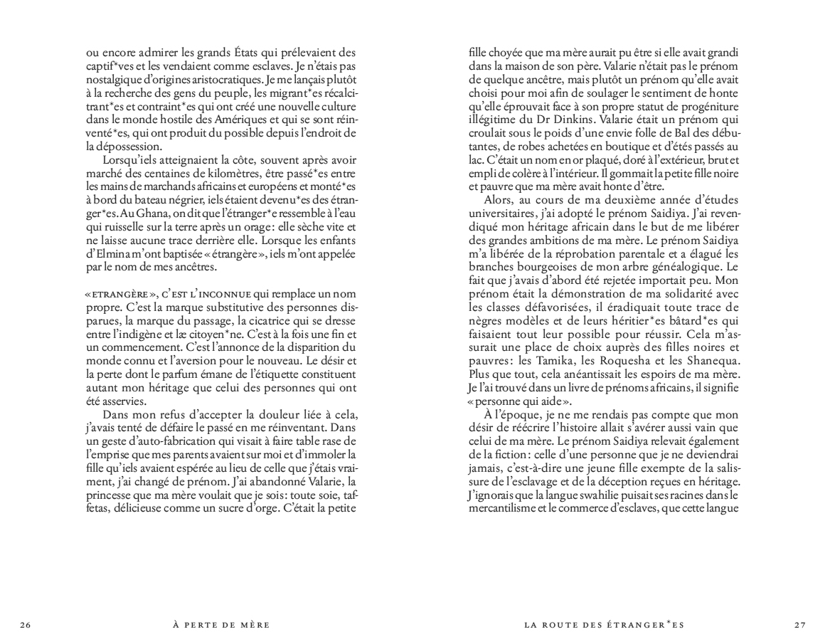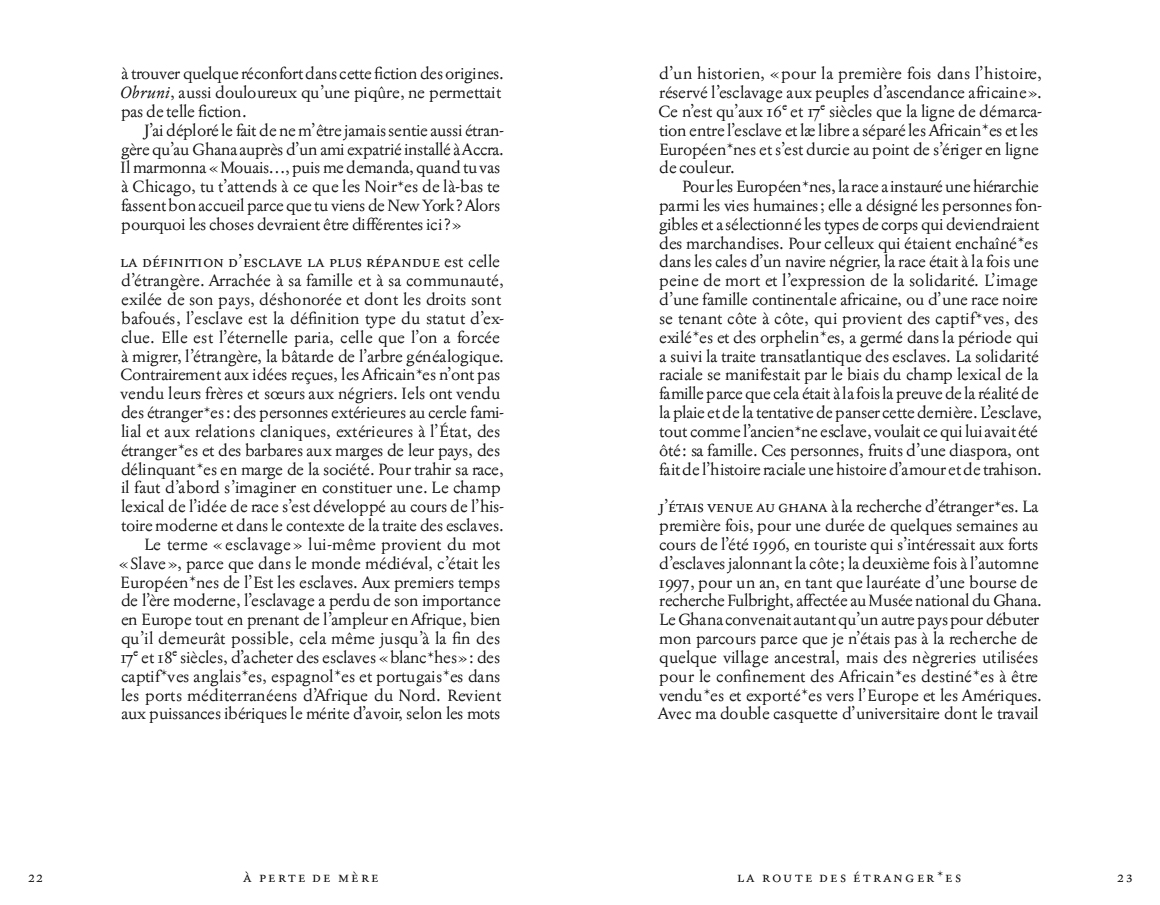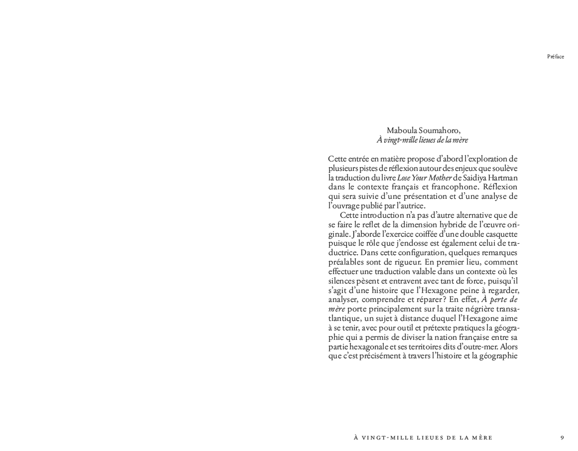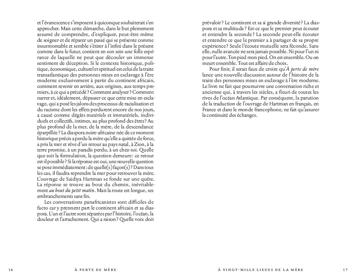 Translated from the English (American) by Maboula Soumahoro (original title: Lose Your Mother. A Journey Along The Atlantic Slave Route, Farrar, Straus and Giroux, 2007).