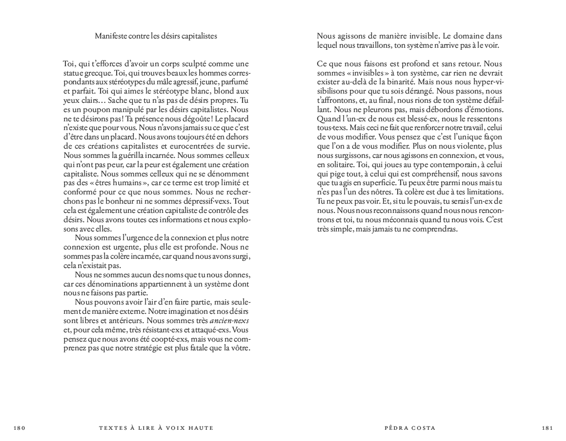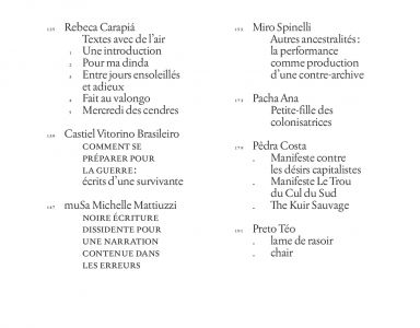 Texts by Ricardo Aleixo, Pacha Ana, Castiel Vitorino Brasileiro, Monna Brutal, Rebeca Carapiá, Pêdra Costa, Ingrid Martins, muSa Michelle Mattiuzzi, Jota Mombaça, tatiana nascimento, Elton Panamby, Grace Passô, Miro Spinelli, Preto Téo, Lucas Veiga.