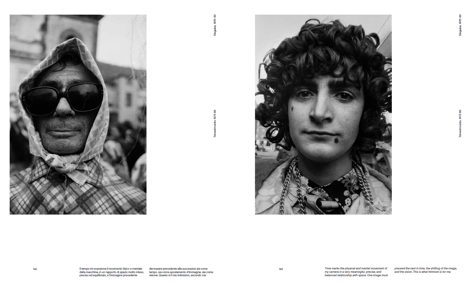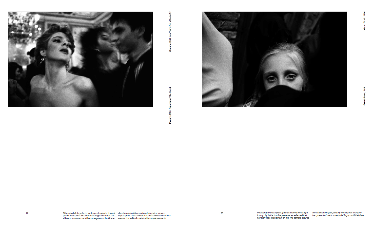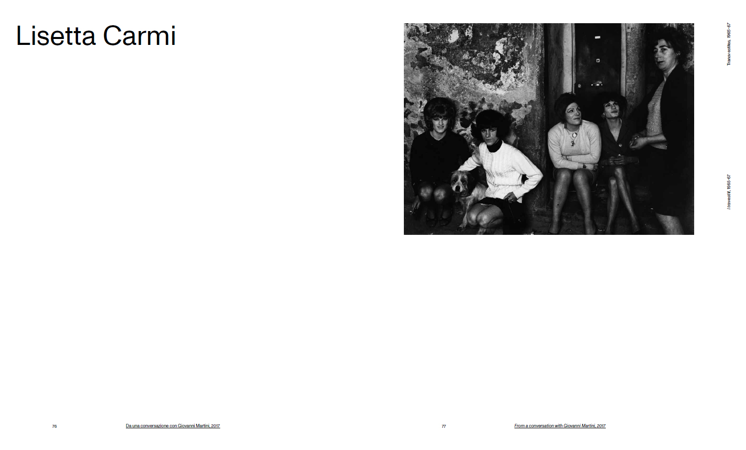 This book is a visual reflection on identity and representation departing from the extraordinary portraits of the transvenstite community in Genoa by Lisetta Carmi (Genoa, 1924), followed by the portraits of actress, writers and artists by Elisabetta Catalano (Rome, 1941-2015); the feminist movements' shots by Paola Agosti (Turin, 1947); women and young women captured by Letizia Battaglia (Palermo, 1935) in a Sicily disfigured by the mafia; to end with the photos of men who used to turn into women for a day, during carnival, in the small towns of Campania captured by Marialba Russo (Naples, 1947).