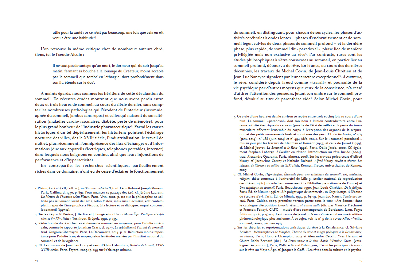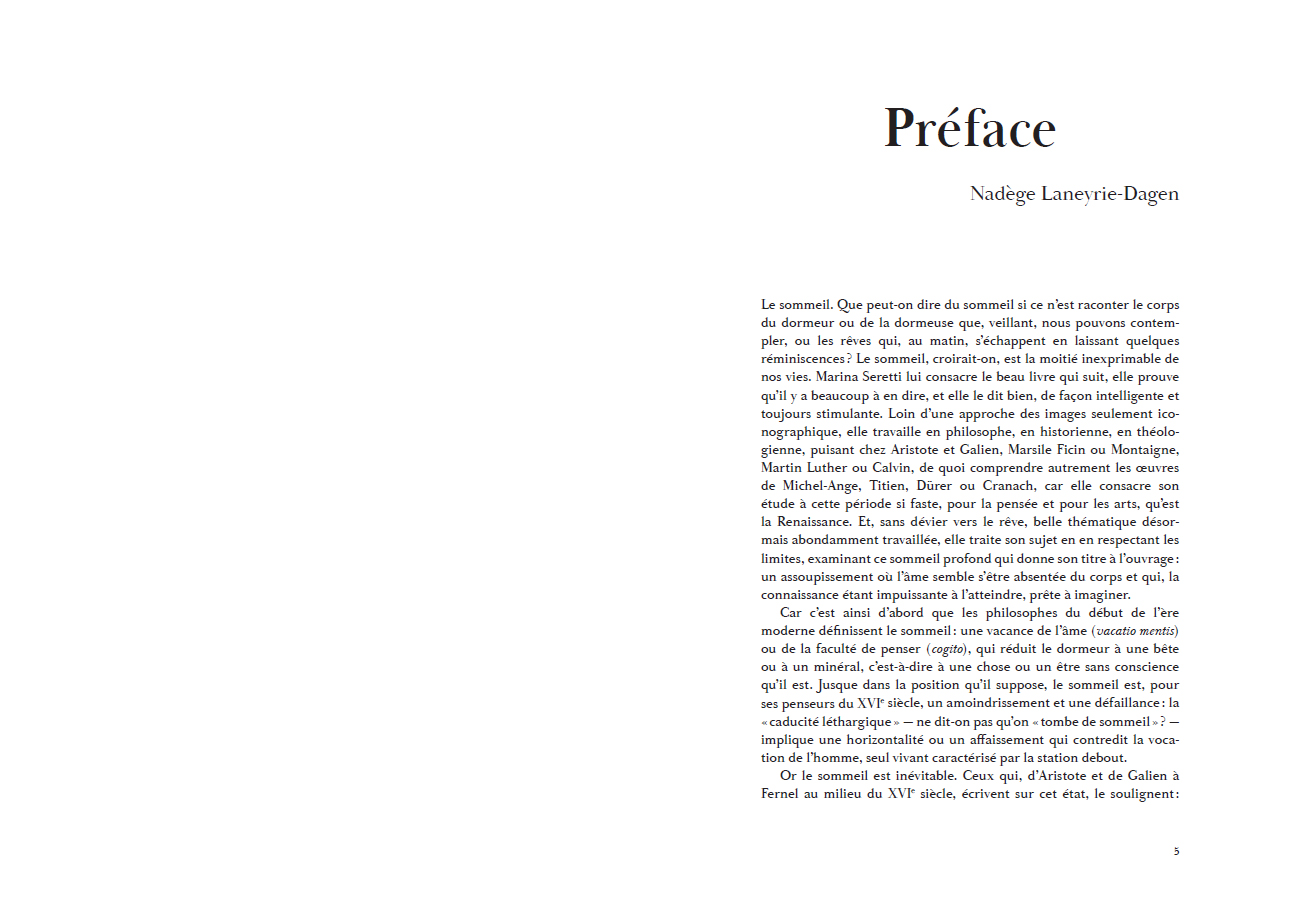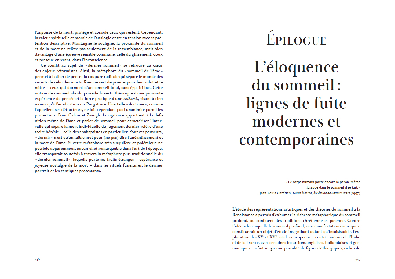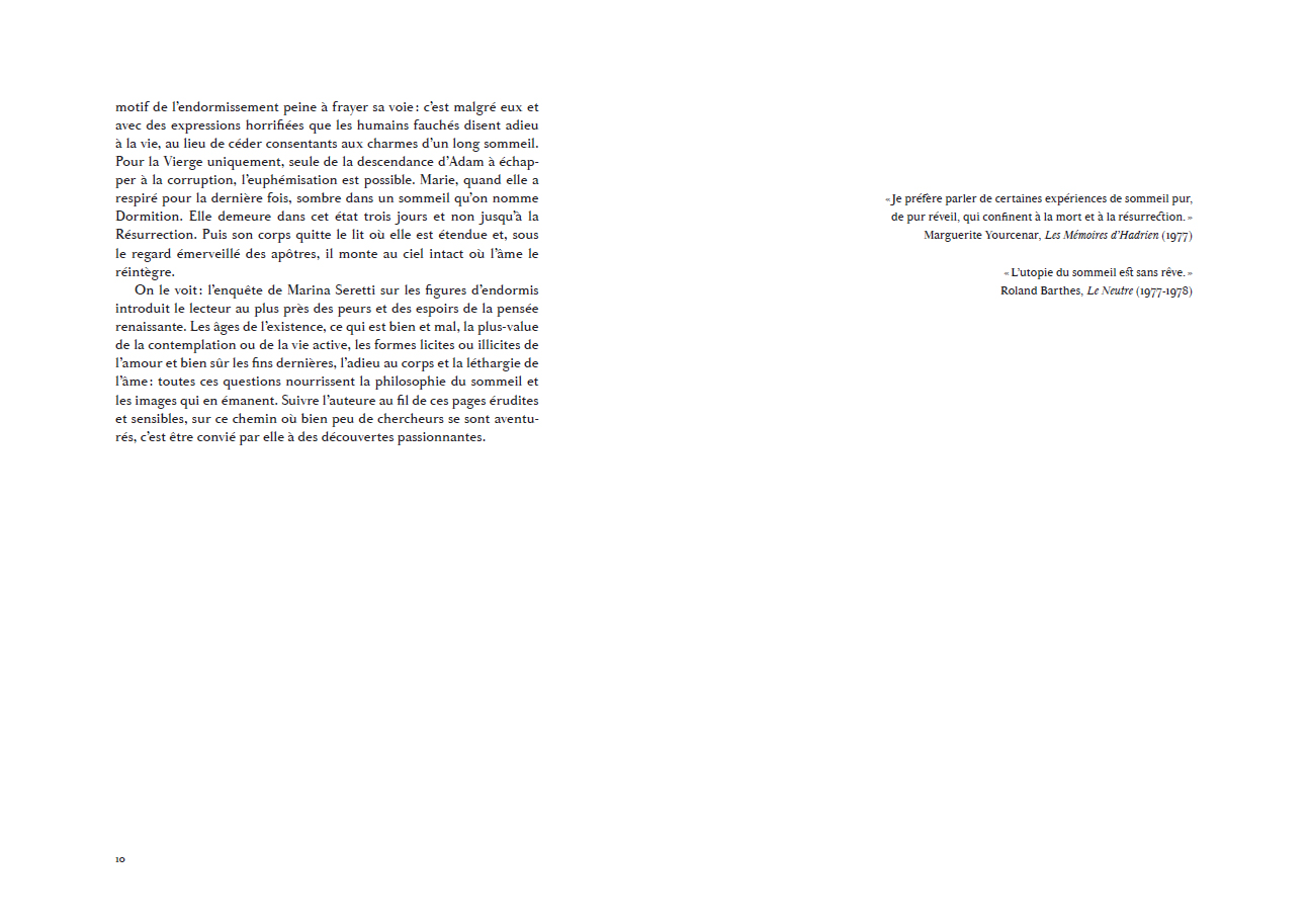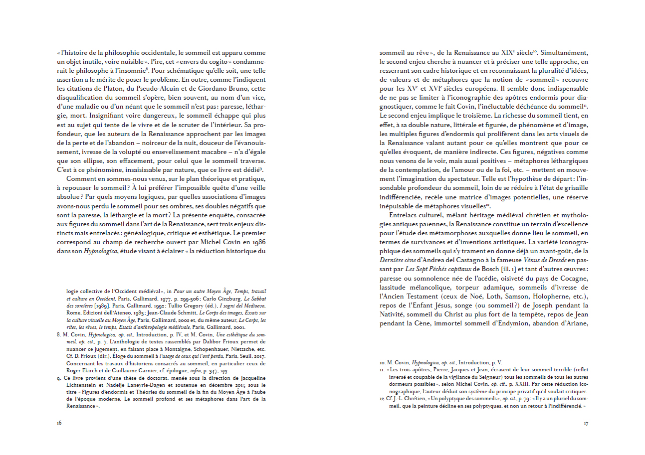 A critical and nuanced overview of the figures of the sleeping in the art and thought of the Renaissance, a source of inspiration for artists—Mantegna, Dürer, Brughel, Michelangelo or Tintoretto—as well as theologians, doctors and philosophers (from Aristotle to Zwingli, via Augustine and Montaigne), beyond the negative definition and the traditional condemnation of inactivity and unconciousness.