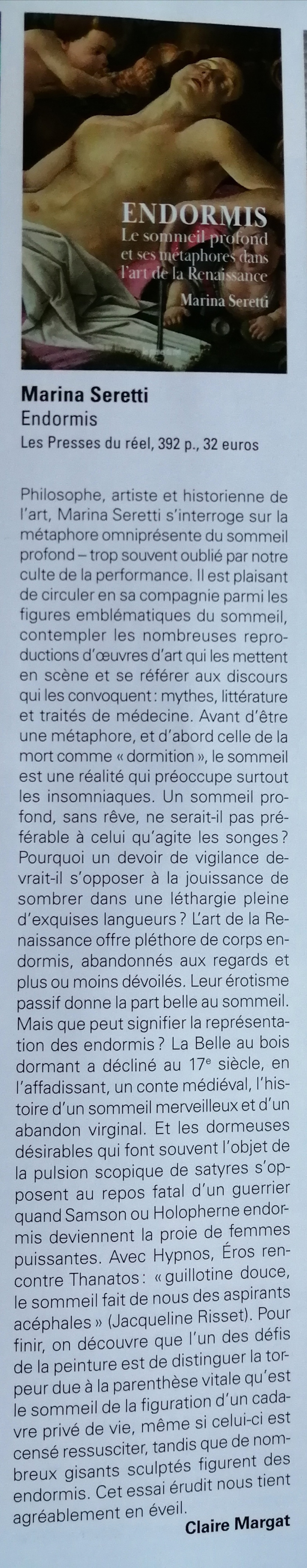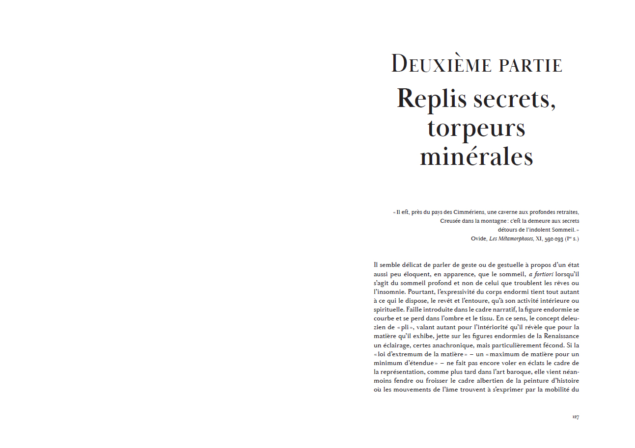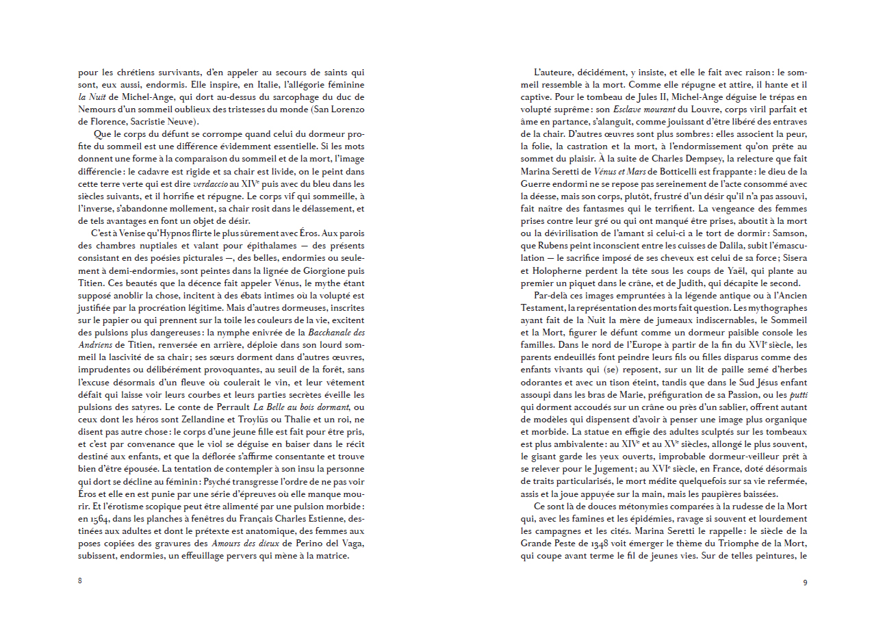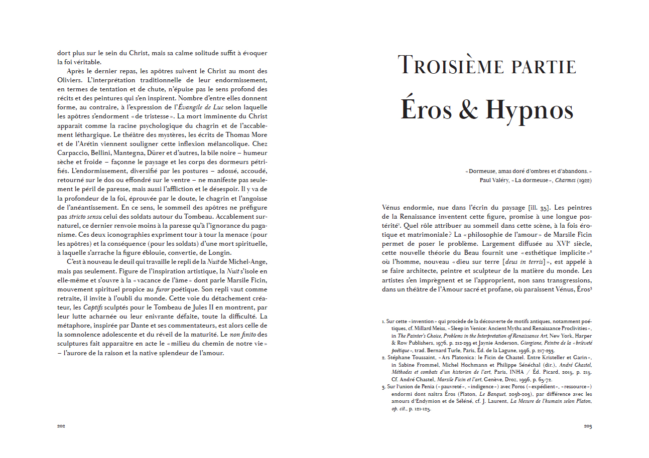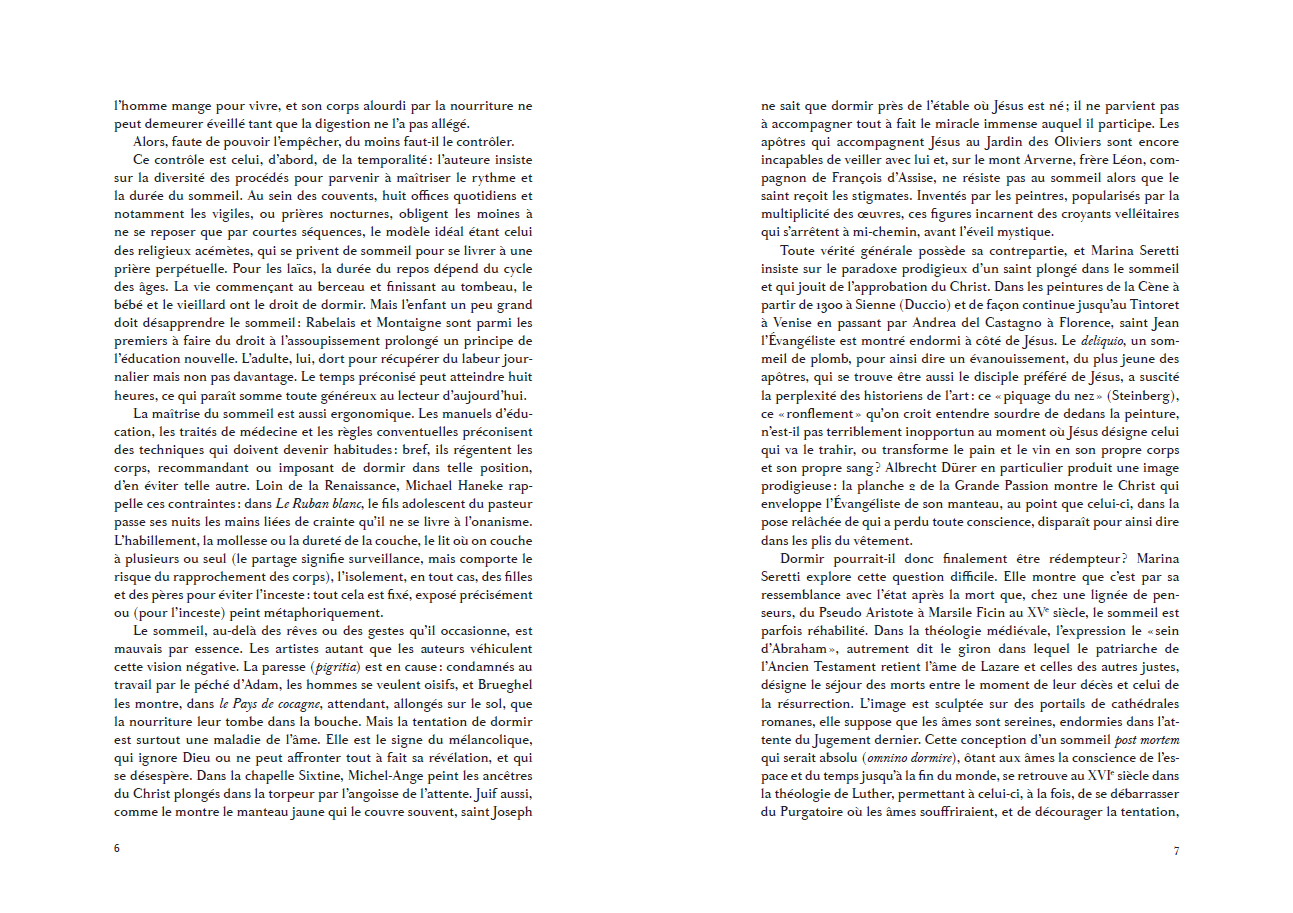 A critical and nuanced overview of the figures of the sleeping in the art and thought of the Renaissance, a source of inspiration for artists—Mantegna, Dürer, Brughel, Michelangelo or Tintoretto—as well as theologians, doctors and philosophers (from Aristotle to Zwingli, via Augustine and Montaigne), beyond the negative definition and the traditional condemnation of inactivity and unconciousness.