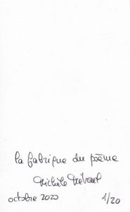 This book gathers the texts (rare or unpublished) conceived as scores of Michèle Métail's oral publications since 1973. This limited edition, numbered from 1 to 20, contains a signed collage.