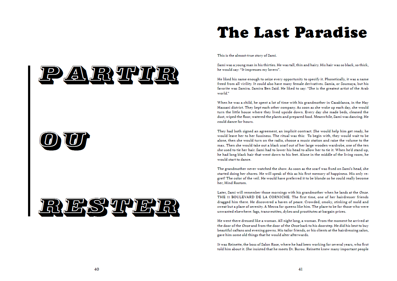 Sido Lansari's Les derniers paradis (Last Paradises) is the fictional portrait of Sami, whose story the author tells "almost true". In Casablanca, he dreams only of dances and Egyptian stars in the barber shop where he works. Until the day he meets Daniel, a lover who introduces him to a revolutionary homosexual Paris. By mixing archive images and film photographs, Sido Lansari draws an intimate portrait of a young man, from childhood to exile, where he discovers he comes from the "last homosexual paradises", as they are called in the West.