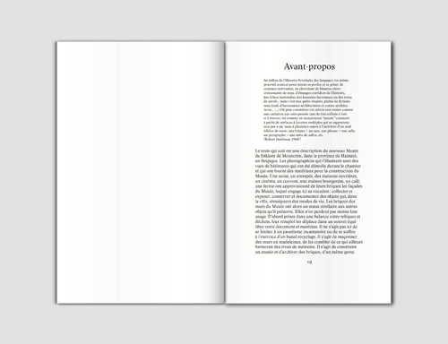 Simon Boudvin's work consisted in inserting bricks that were recovered from the demolition sites of several small heritages in Mouscron. The bricks inserted in the facade contribute to the story of the preservation of tradition and minor architecture under threat. As part of the work, the book “Un Nouveau Musée” consists of a text by the artist, in which he extensively descibes the museum, without showing it.