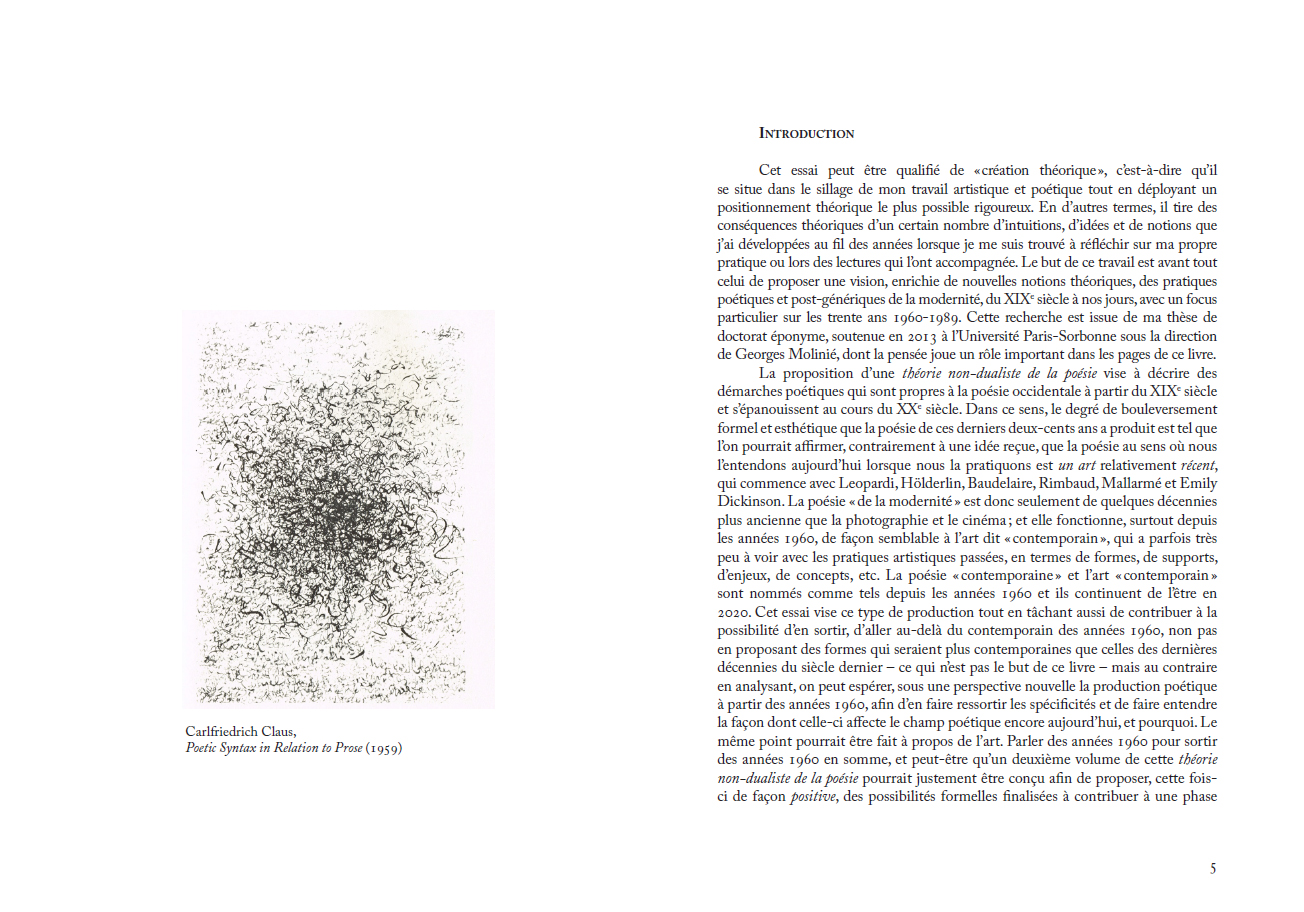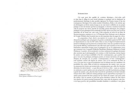 i.e. poetry readings realised as performances and installations. He is currently developing immersive textual installations in virtual reality, visual works with language and acrylic painting, volume pieces with asemic writing, and new collective reading environments. The textual material used for his projects is often taken from his poetry and conceptual writing, that he conceives as plastic objects in their own right.