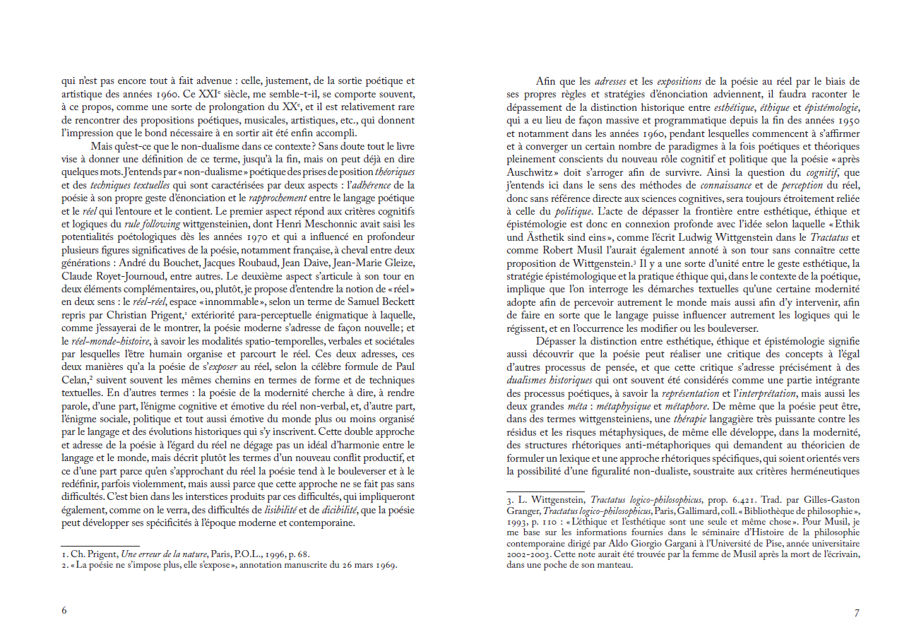 A comparative analysis of the poetic creation of the second half of the 20th century, under the aegis of the notion of non-dualism, redefining the epistemologies of action peculiar to the poetry of the 1960-80s but also, in perspective, of the extreme contemporary.