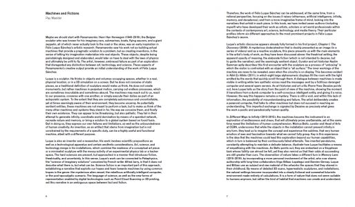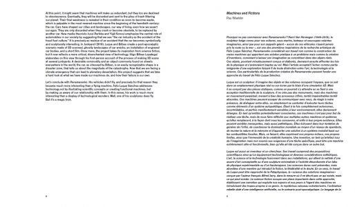 Machines & Fictions is a monograph on the work of Spanish artist Félix Luque Sánchez over the last twelve years, in collaboration with fellow artists Damien Gernay and Íñigo Bilbao. The book includes texts by leading scholars, curators, and art critics who discuss Félix Luque Sánchez's artistic projects.