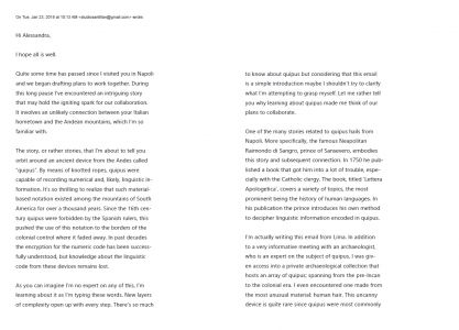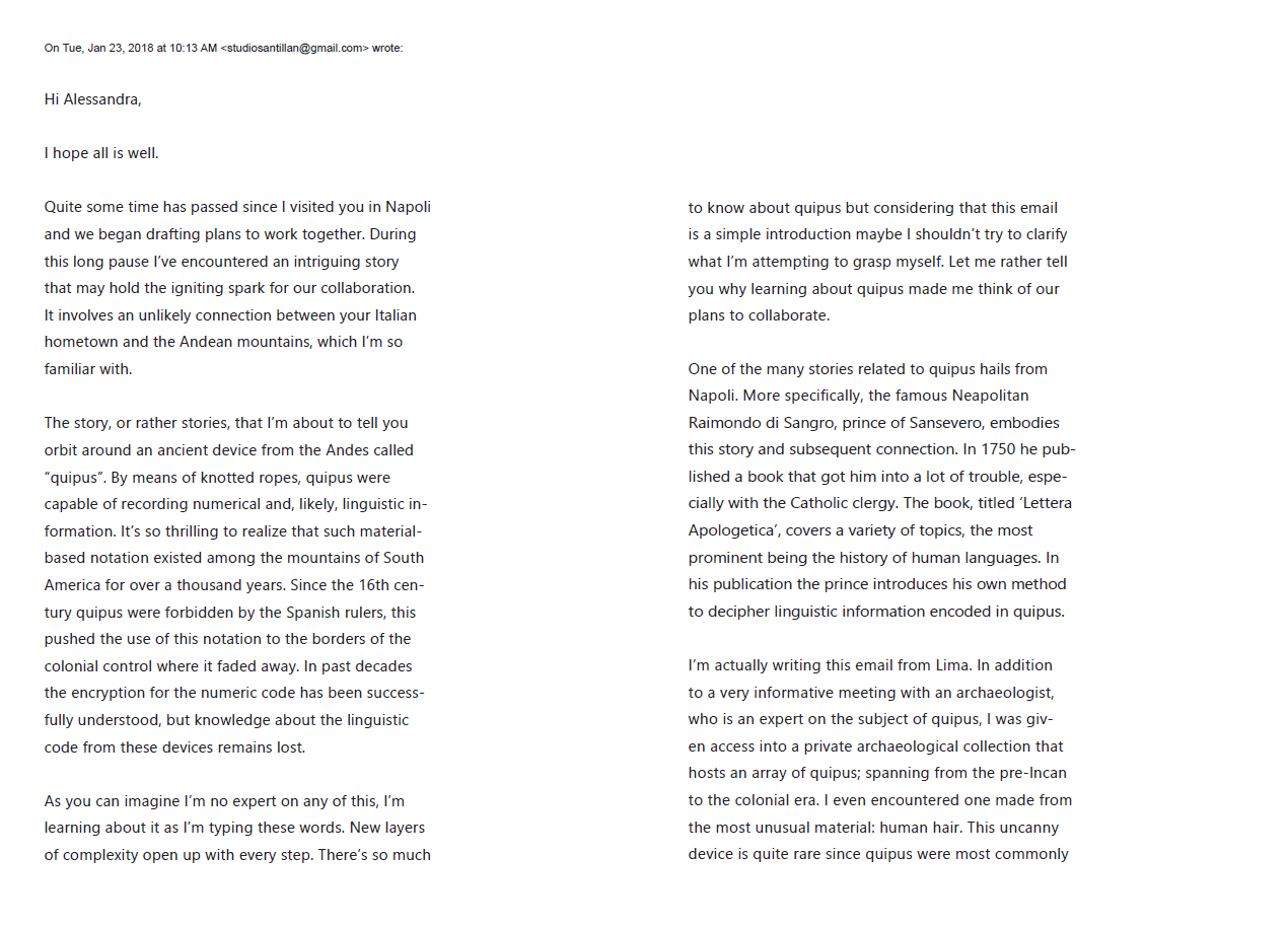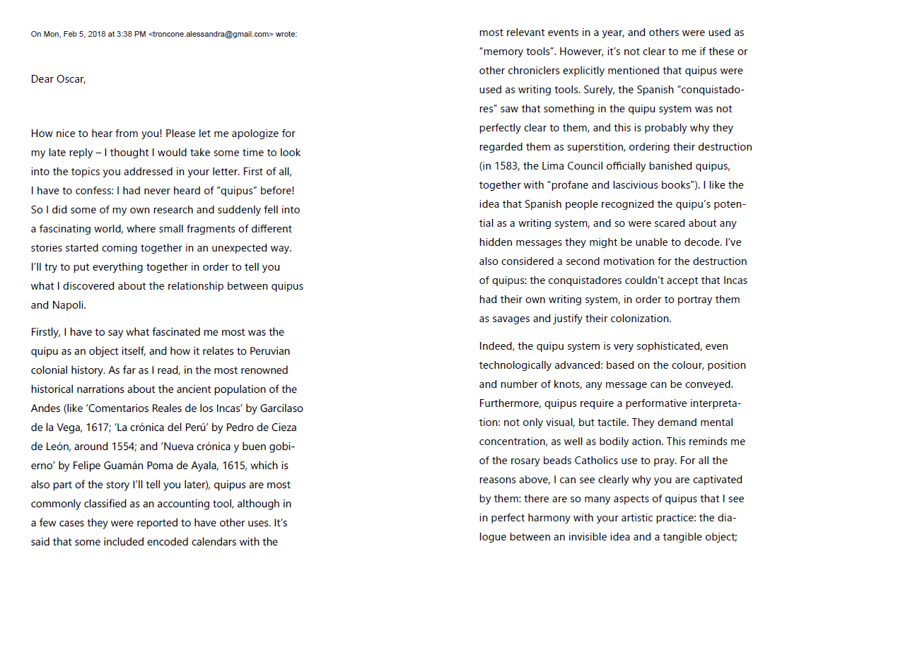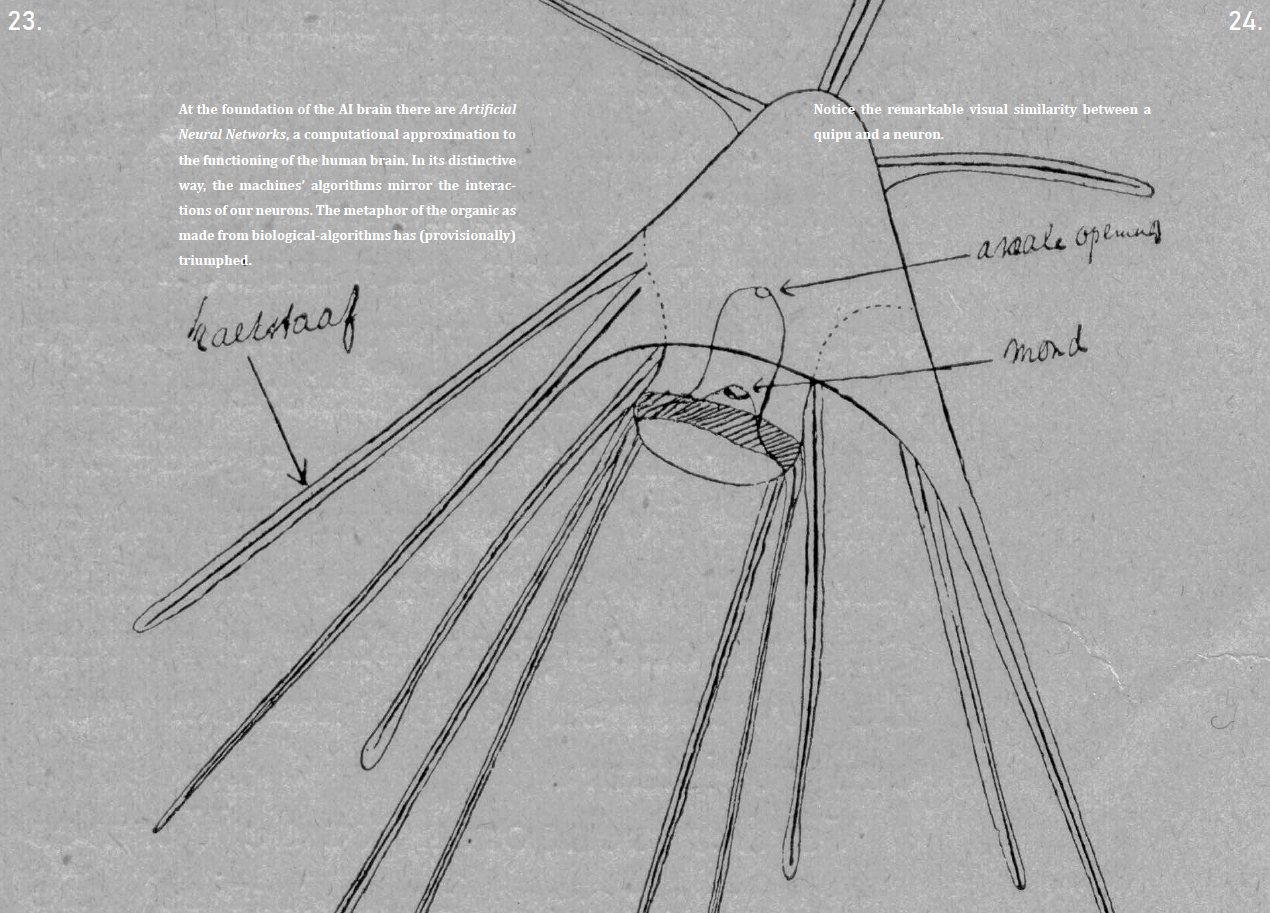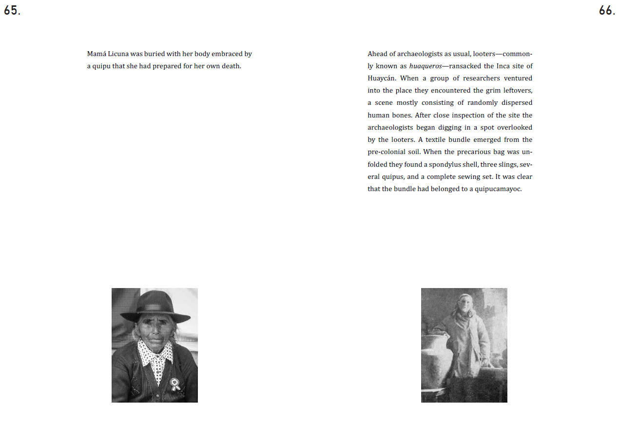 Over a thousand years ago a form of material code emerged among the Andes mountains. By means of knotted ropes, called “quipus”, numbers and words were enacted. This publication The Andean Information Age knots together a universe of stories related to the quipu system, the history of its ongoing decipherment, and the disruption that this sensorial code may be able to trigger in our present.