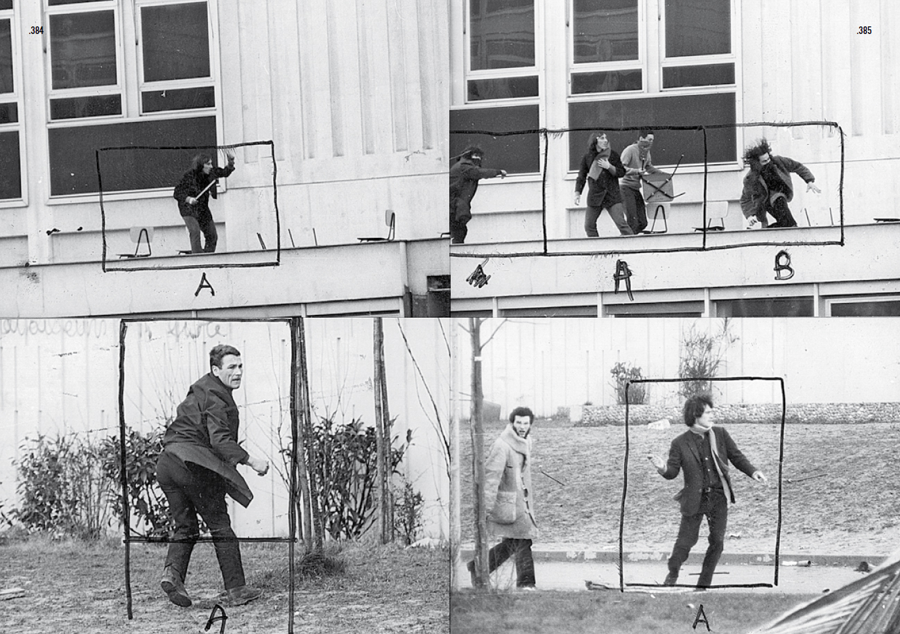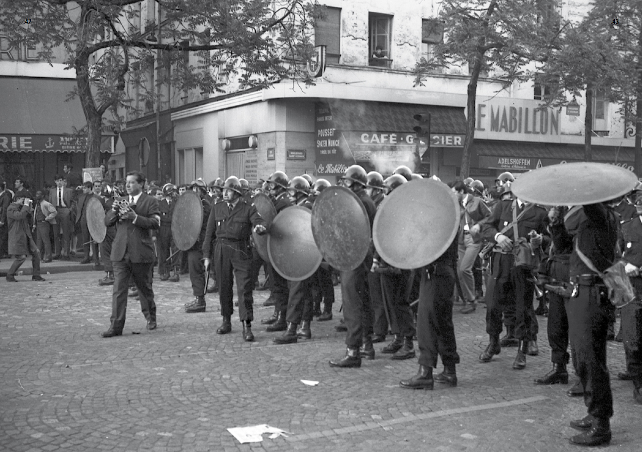 The pictorial order of a regime of surveillance applied during the last wide-ranging insurgence in Europe's history surfaces from the analysis of this unique visual archive. Following the events happening at the Sorbonne in May 1968, alongside general strikes and nationwide factory occupations, France's state of emergency becomes apparent through a specific iconography of visual control.