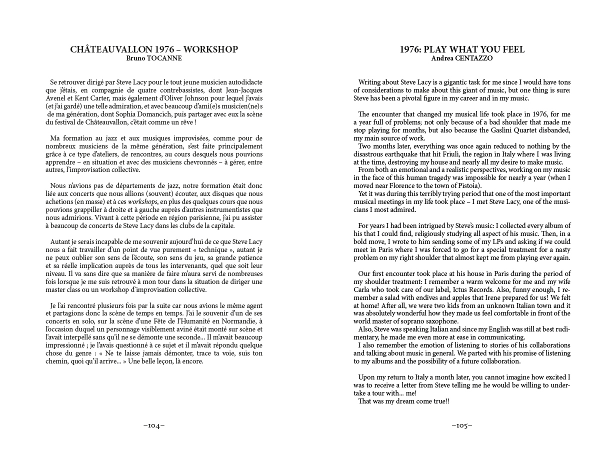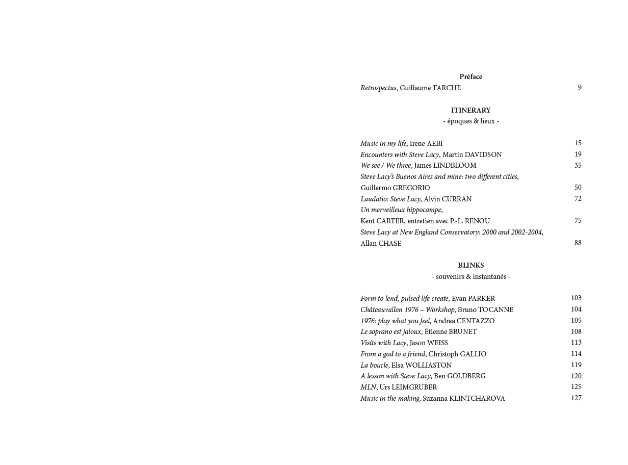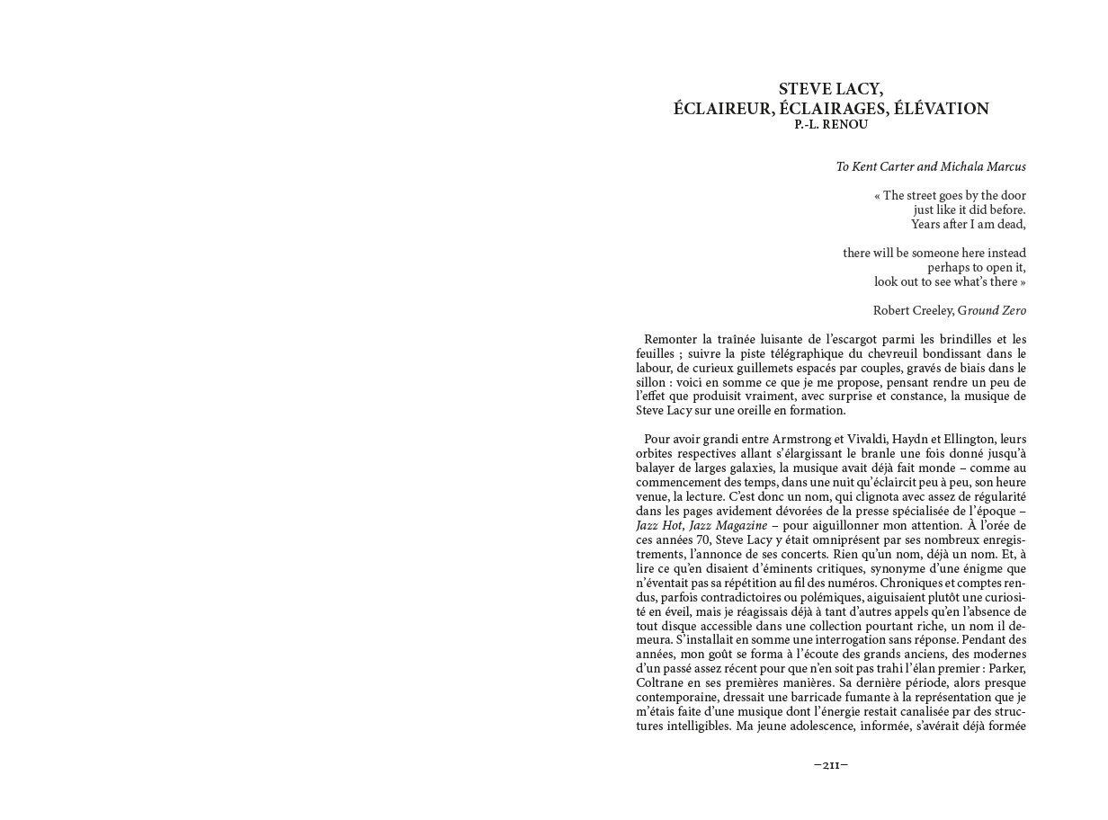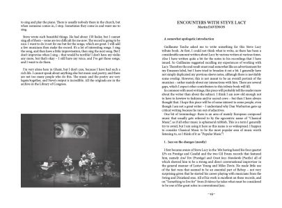 And you, how do you hear him? As we approach the twentieth anniversary of Steve Lacy' death (or the ninetieth anniversary of his birth), Guillaume Tarche asked the question, in English, in French, in Italian, to Steve Adams, Irene Aebi,