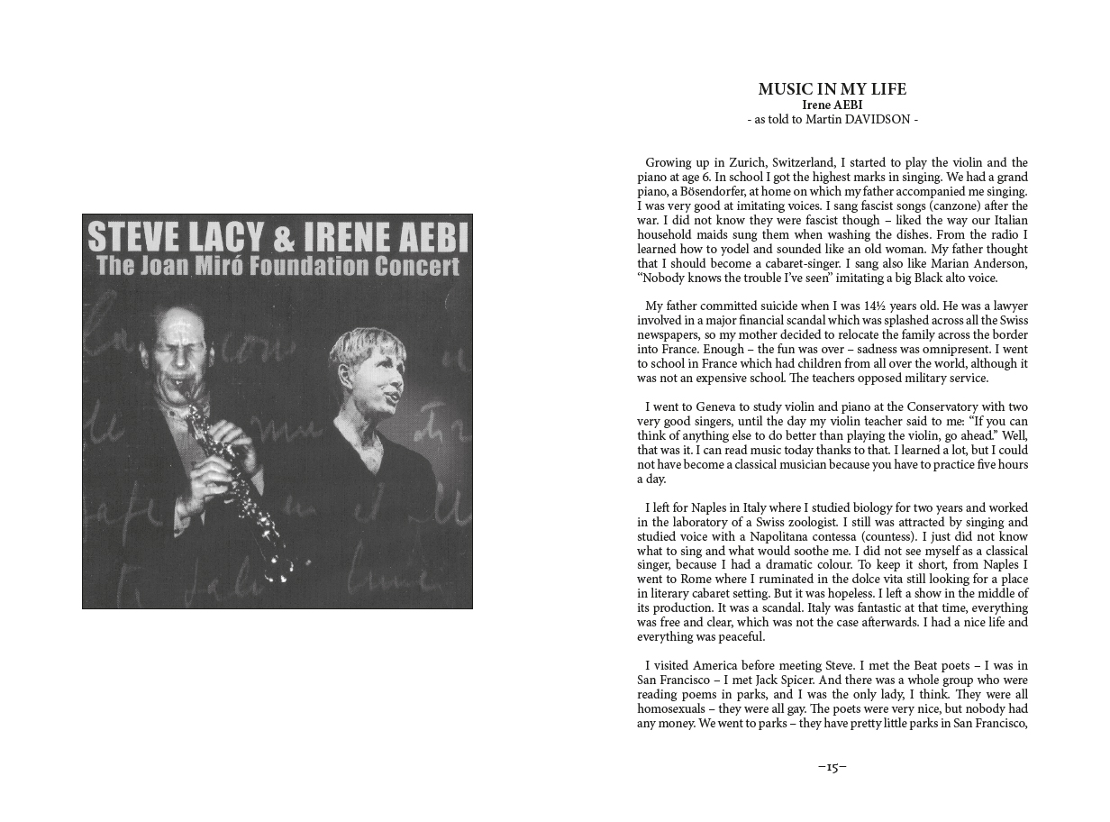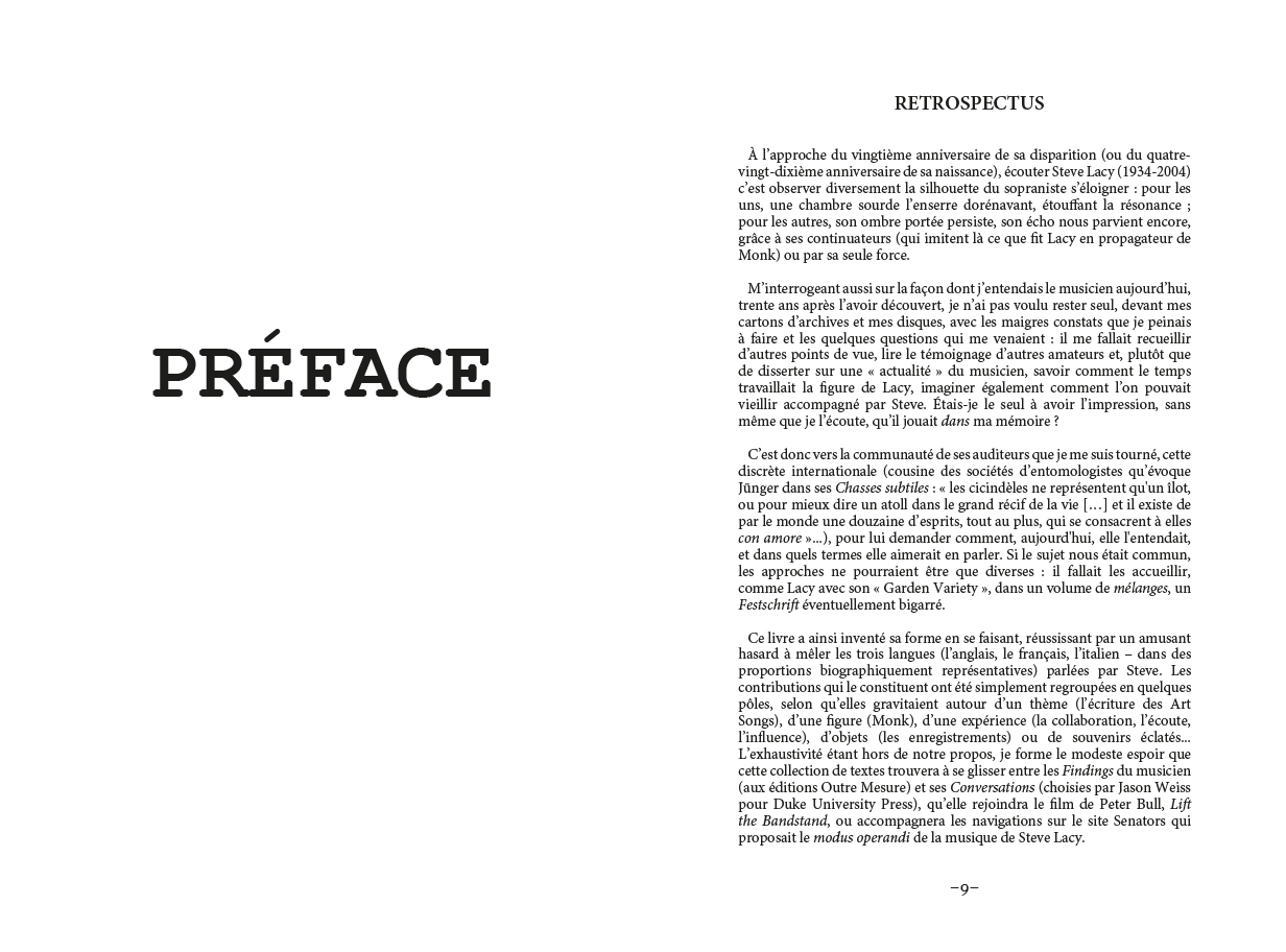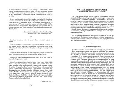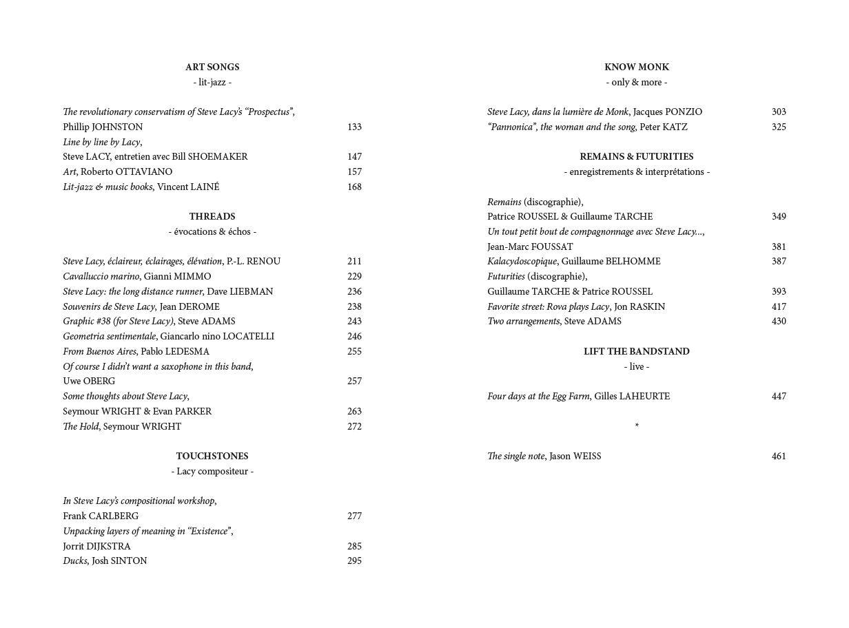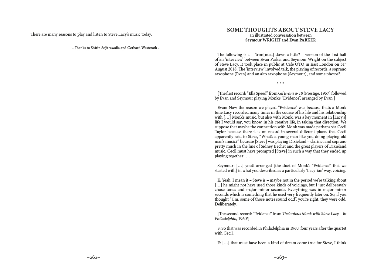 And you, how do you hear him? As we approach the twentieth anniversary of Steve Lacy' death (or the ninetieth anniversary of his birth), Guillaume Tarche asked the question, in English, in French, in Italian, to Steve Adams, Irene Aebi,