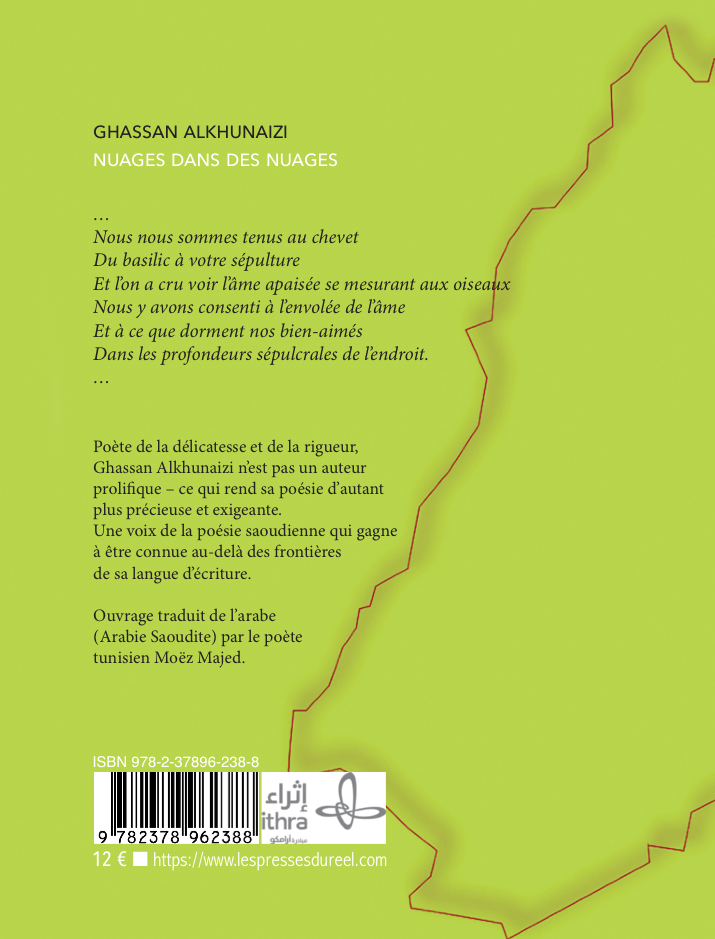 poet of delicacy and rigor, Ghassan Alkhunaizi (born 1960 in Saudi Arabia) is not a prolific writer—which makes his poetry all the more precious and demanding. A voice of Saudi poetry that deserves to be known beyond the borders of its language of writing.