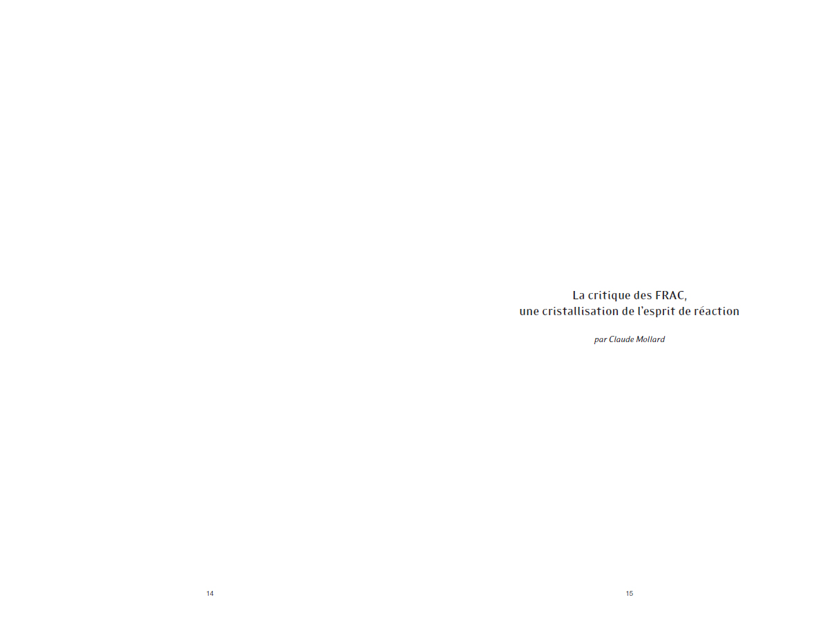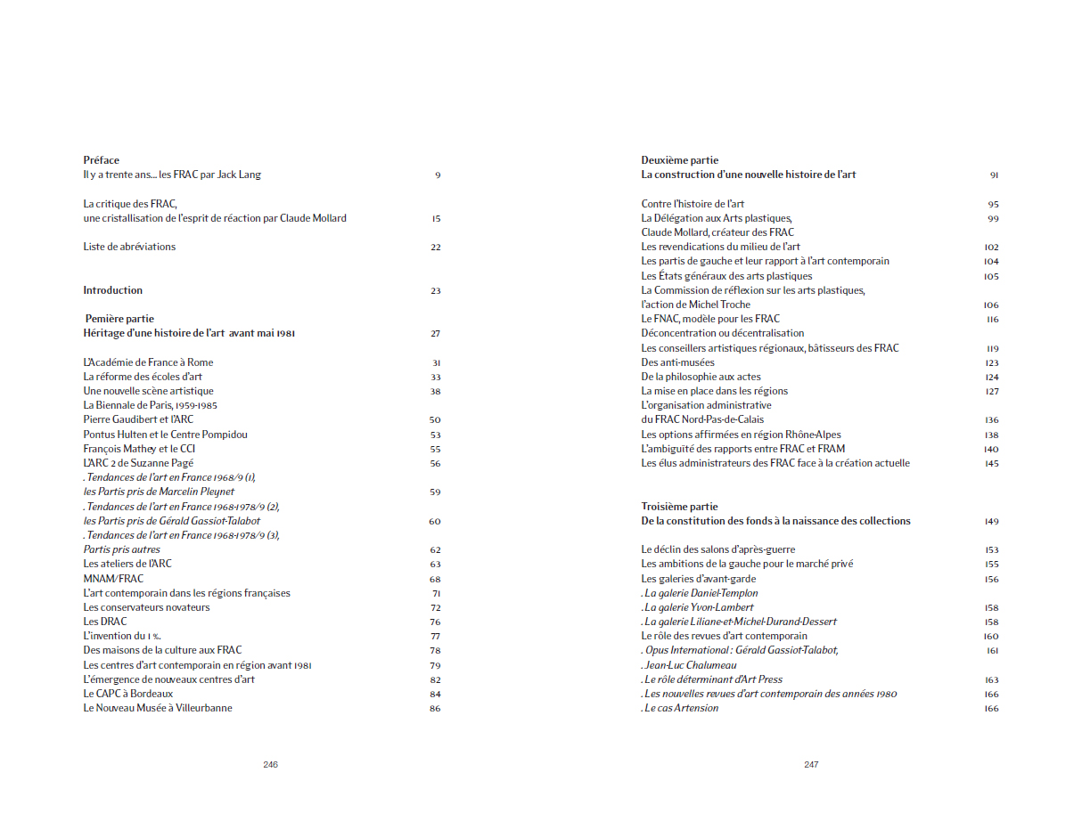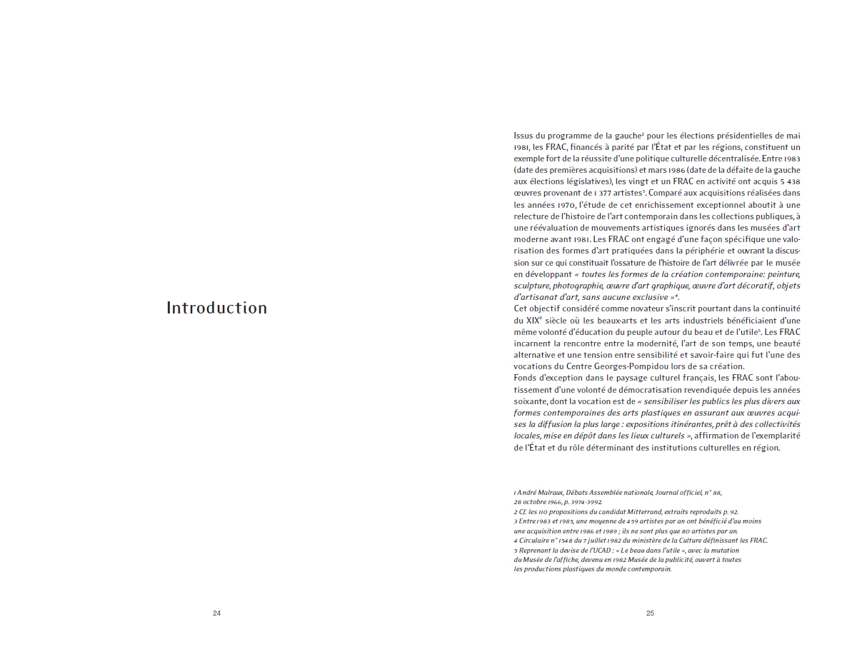 This study of the origin and creation of the FRACs (Regional Funds of Contemporary Art) between 1981 and 1986 reviews the history and assesses one of the flagship measures of French decentralized cultural policy.