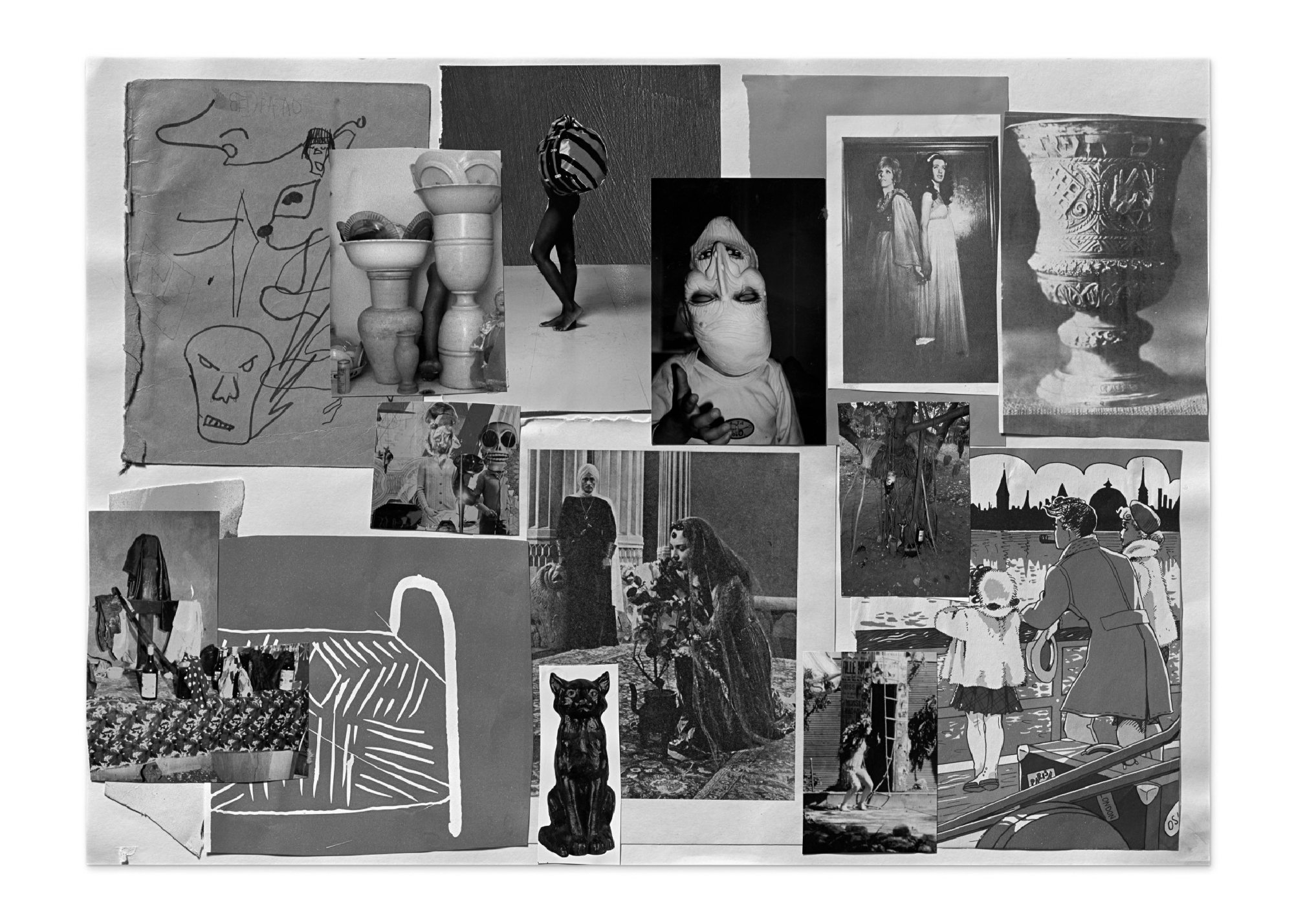 Garbage Man could refer to Tal R himself as manic collector of what other people would perhaps refer to as refuse. Collecting and arranging of images is an integral component of his artistic practice and arises in its own manifestation from an inner necessity. The Yiddish word "Kolbojnik" (Waste, Remains) also runs through the work of the artist within the titling of many of his works. His collection, which can be found within the individual collages, consists of an eclectic mix of "primitive tribal art", art history masterpieces, pornos, comics, private photos, childhood pictures, sketches and picture book illustrations, and was collected by Tal R over a period of 25 years.