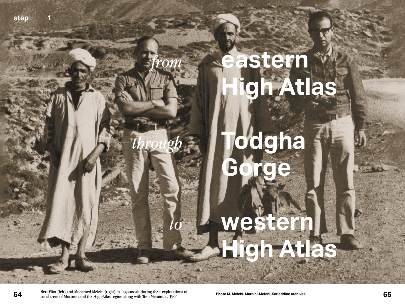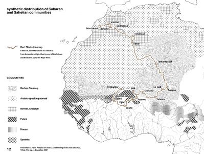 At the heart of his research, particularly intense in the High Atlas and Anti-Atlas Mountains, Bert Flint understood how to reveal the fundamental role of Saharan populations within the multi-cultural heritage of Morocco. They represent, for him, the genuine vector of Afro-Berberism, demonstrating that civilisation is not produced by urban and trading centres alone, but also by the desert and its nomadic populations. It is thus the case to retrace the deep cultural transfers, from one side to the other of a sub-Saharan border that self-dissolves, as these exchanges take place far beyond the context of national or colonial borders.