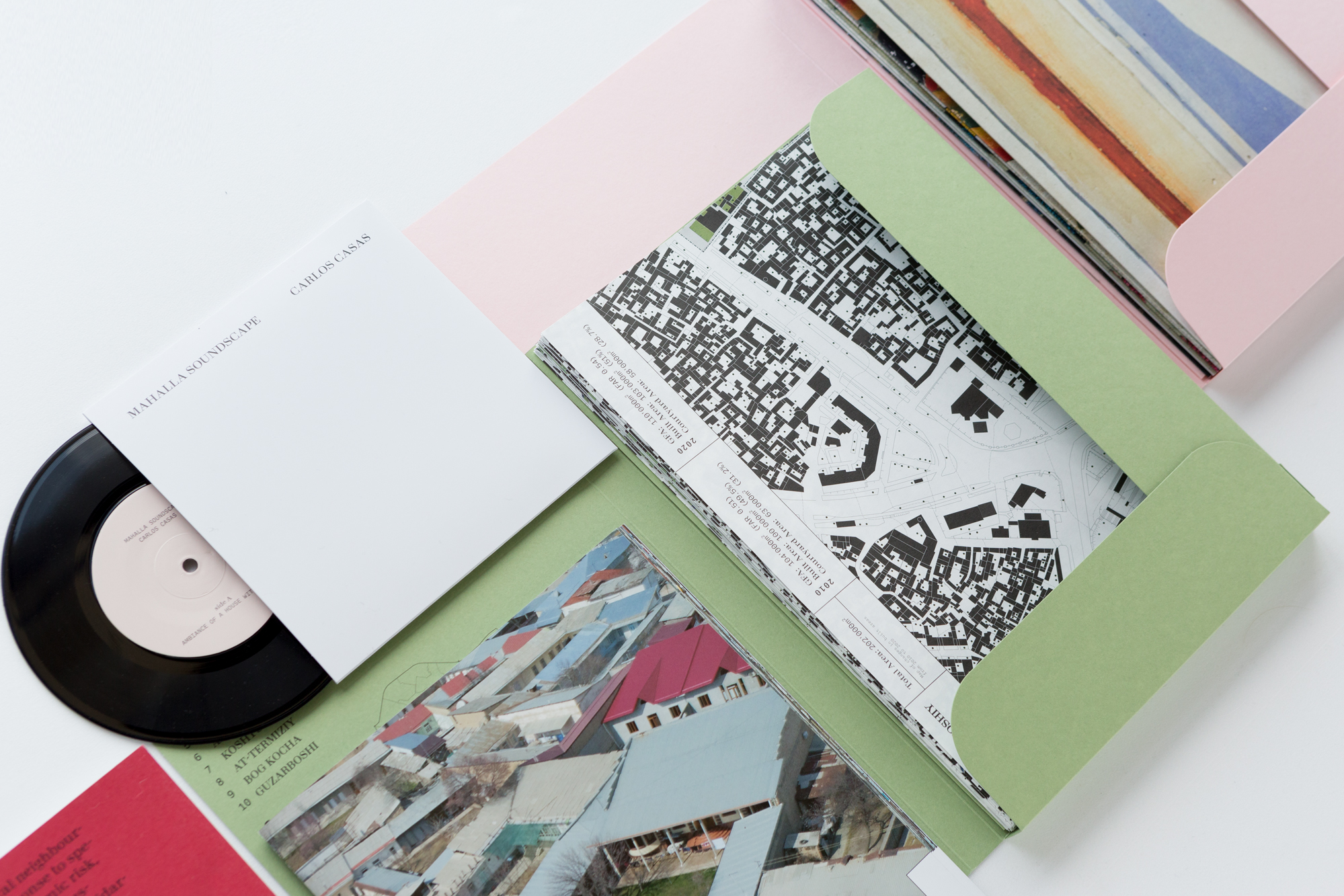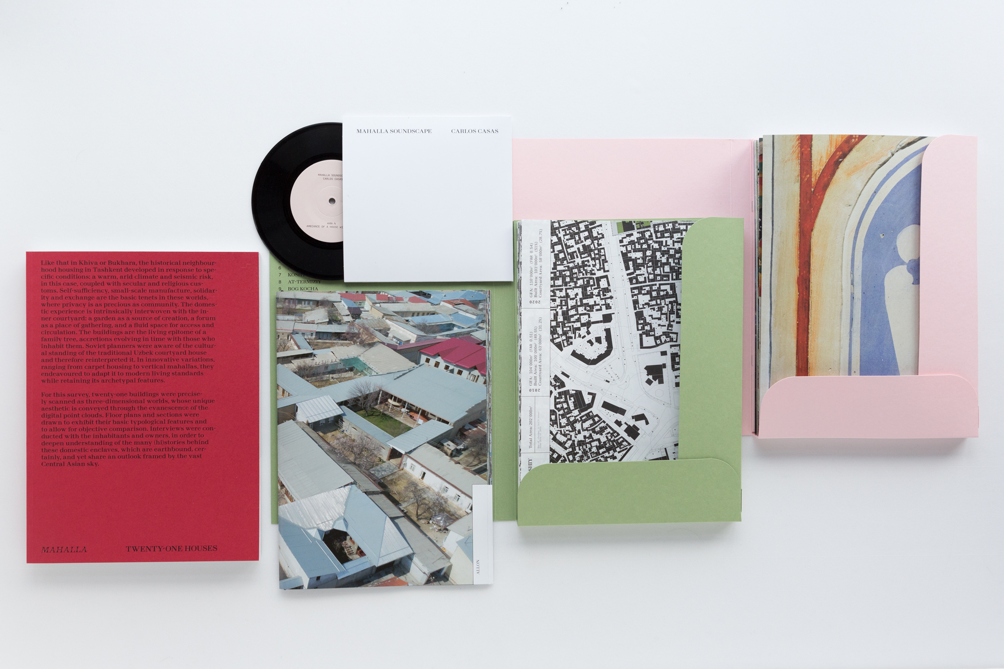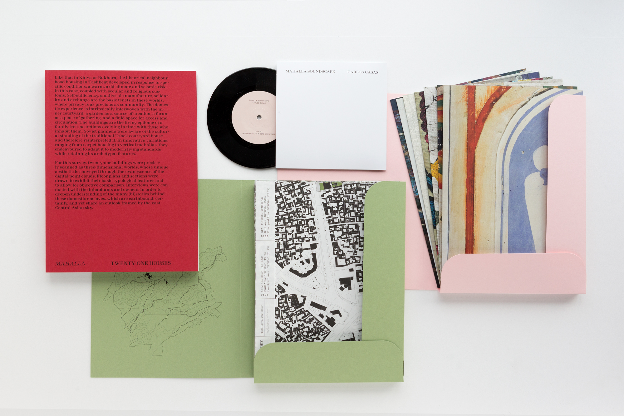 The Mahalla – The Survey box contains drone imagery, contemporary street views, redrawn cadastral maps, floor plans and sections, point cloud imagery, explanatory texts, sound by Carlos Casas and exclusive art prints by Bas Princen, all combined in a preciously designed folder.