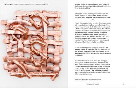 Quinn Latimer taps into the use of language in all its varied forms within Argianas's art, and the sonic formalities of his work; Jennifer Kabat anchors her essay in swimming, direct experience, memory and affect; and Dan Fox, from whose essay the book's title is drawn, uses the format of fiction, animating the artworks through a back-and-forth historical and spatial time-travel, in a manner sympathetic to Argianas's purposeful use of period style.