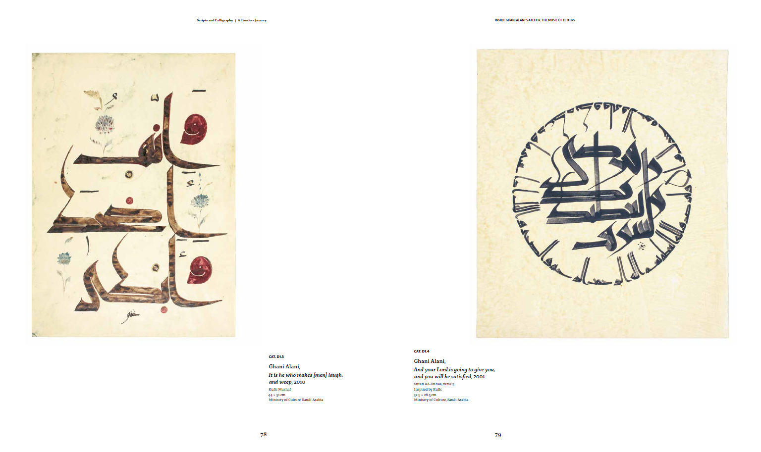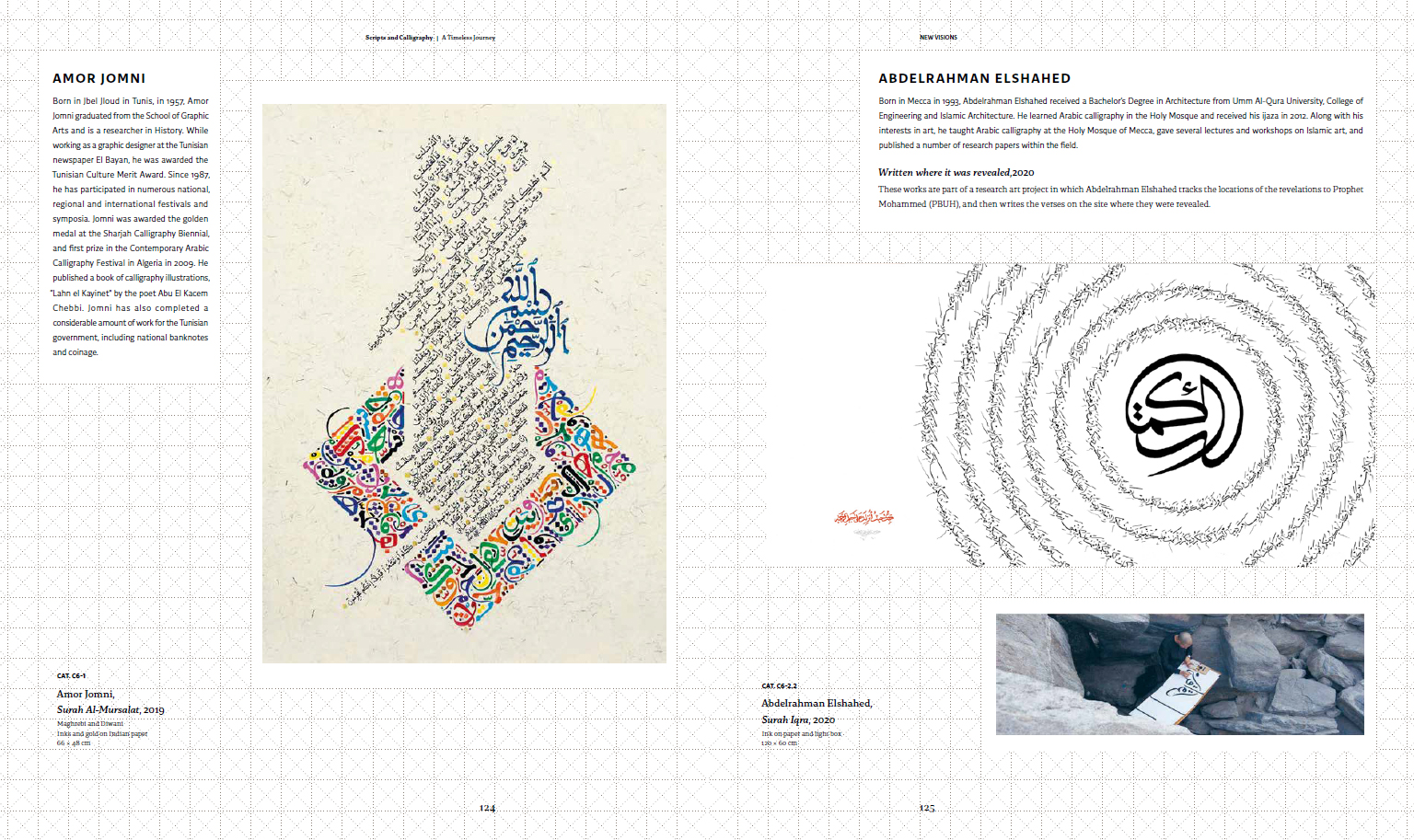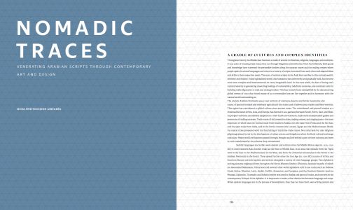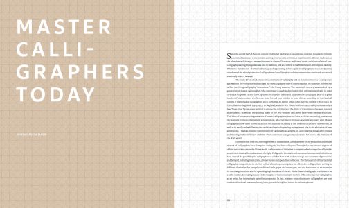 The history of Arabic calligraphy: this catalogue highlights the stages of the Arabic Script's development since its very beginnings and the artistic relationship between calligraphy, contemporary art, and artificial intelligence through an exceptional journey of knowledge, featuring Saudi and international master calligraphers, contemporary artists, and designers.