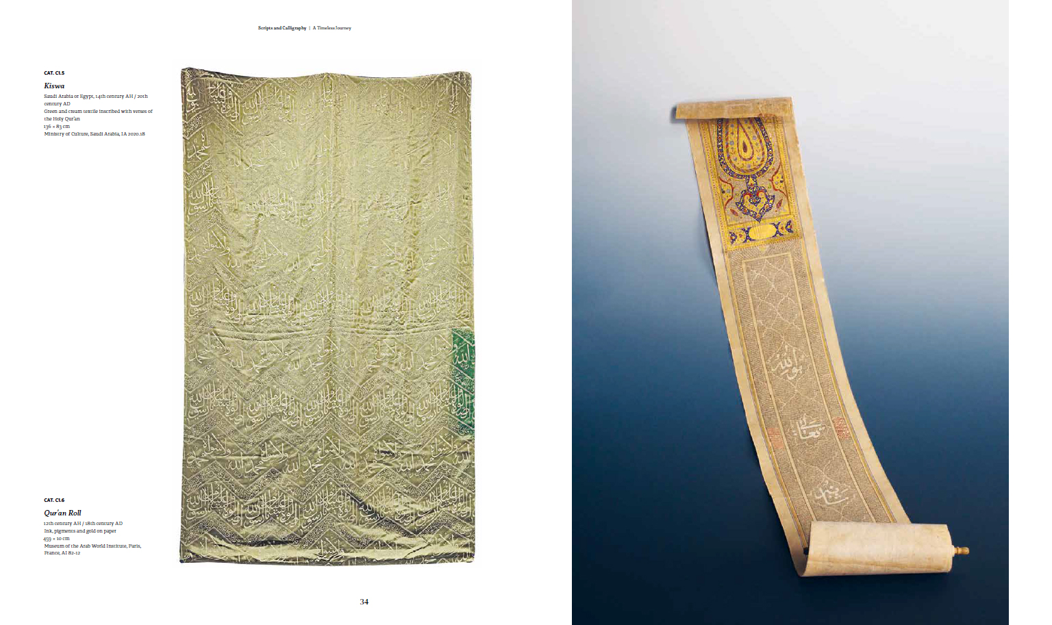 In 2020, the "Year of Arabic Calligraphy" initiative has been launched in Saudi Arabia to highlight one of the main components of Arab culture and increase its practice in institutions and among Saudi citizens. Arabic calligraphy is the purest art form in Islam and has been used over the span of fifteen centuries to ensure the transmission of the Qur'an and to glorify the Arabic language, from the Arabian Peninsula to Andalusia in the West and China in the East. Developed in the 1st century AH / 7th century AD, calligraphy swiftly became an autonomous visual art as well as the main decoration of mosques, palaces, madrasas and fountains. Arabic calligraphy has been applied on thousands of manuscripts, bowls, lamps or textiles, and master calligraphers continue to pass their art to their students from one generation to another. Scripts and Calligraphy: A Timeless Journey exhibition and its publication present the origins of the Arabic script and the development of the art of calligraphy. It pays tribute to Saudi and international master calligraphers, contemporary artists and designers. It highlights the artistic relationship between calligraphy and artificial intelligence, in order to demonstrate the timelessness of Arabic calligraphy and its endless journey towards the future of art.
