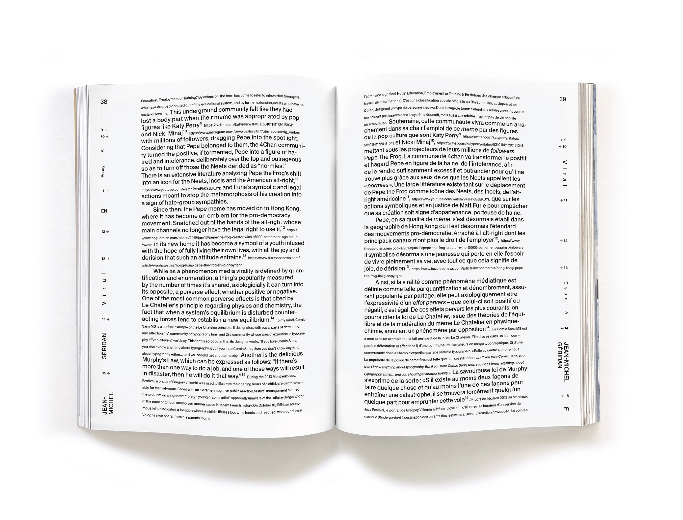 The catalog of the third edition of the International Graphic Design Biennial, organized by le Signe, centre national du graphisme, questioning the role of virality in today's society (with Fanette Mellier, the Iranian studio Kargah, Michel Le Petit Didier, Michiel Schuurman...).