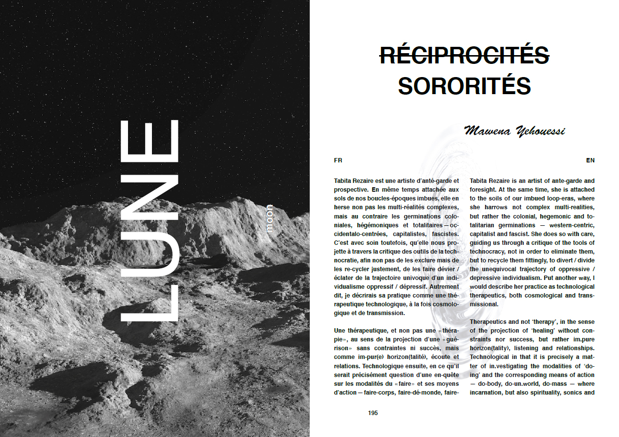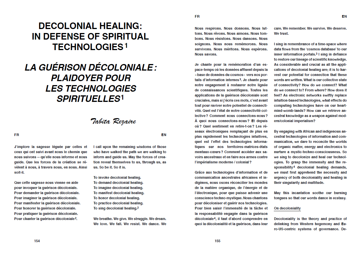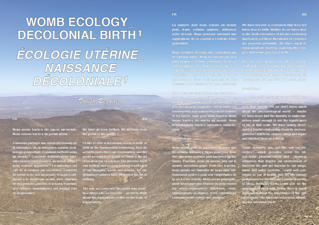 This collective publication is a singular invitation to discover or deepen the universe of Tabita Rezaire, at the intersection of new technologies, decolonial healing, spirituality and the political history of science. Through numerous contributions from poets, theorists, artists and her friends and relatives, she invokes the wisdom of the womb: the mother womb, the earth womb, the cosmic womb, for us to receive its grace.