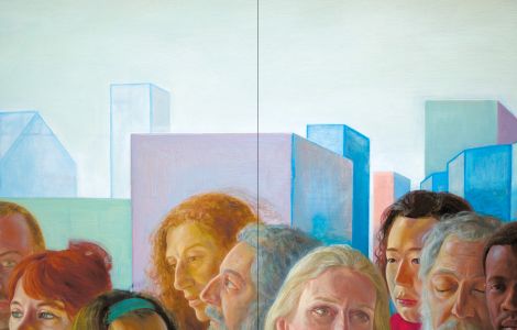 Despite featuring new, often urban spaces, the characters that populate Marion Bataillard's paintings, alone or in groups, continue to animate her work, to raise both the pictorial and metaphysical question of incarnation: "I like to think of the world like the Creation and its inhabitants like creatures, powerful and powerless at the same time. This makes them lovable to me."