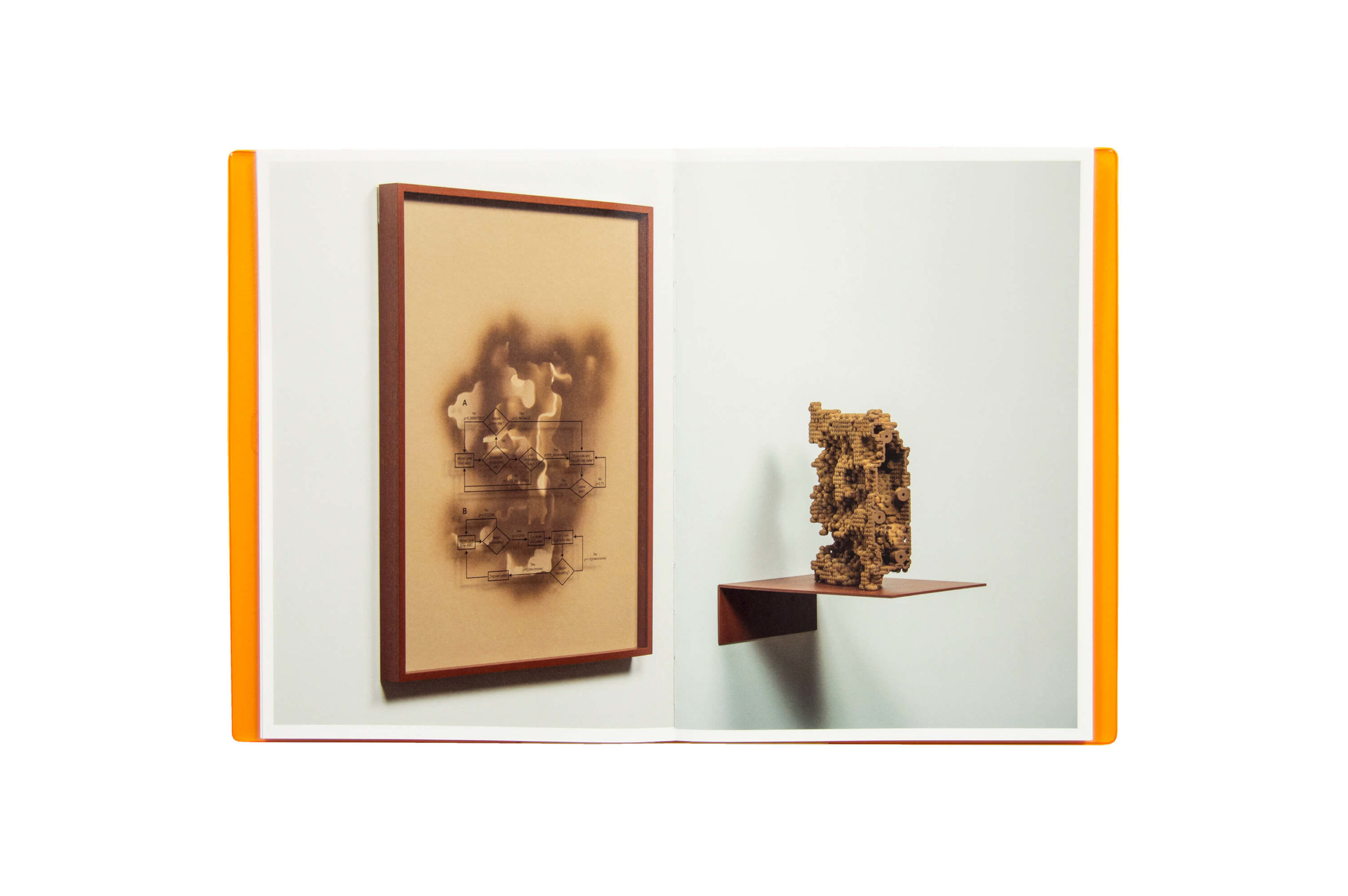 The book presents each phase in the order of the exhibition series. It includes process and research photographs, diagrams, installation and detailed imagery. It includes an essay by Artist Mariana Silva, a fictional text by writer ST.Lore, a conversation between Mangan and cultural theorist Ana Teixeira PintoAna Teixeira Pinto, and a republished essay by Dr. Guy Theraulaz Research Director Member of Team CAB: Collective Animal Behavior Center for Research on Animal Cognition, CNRS.