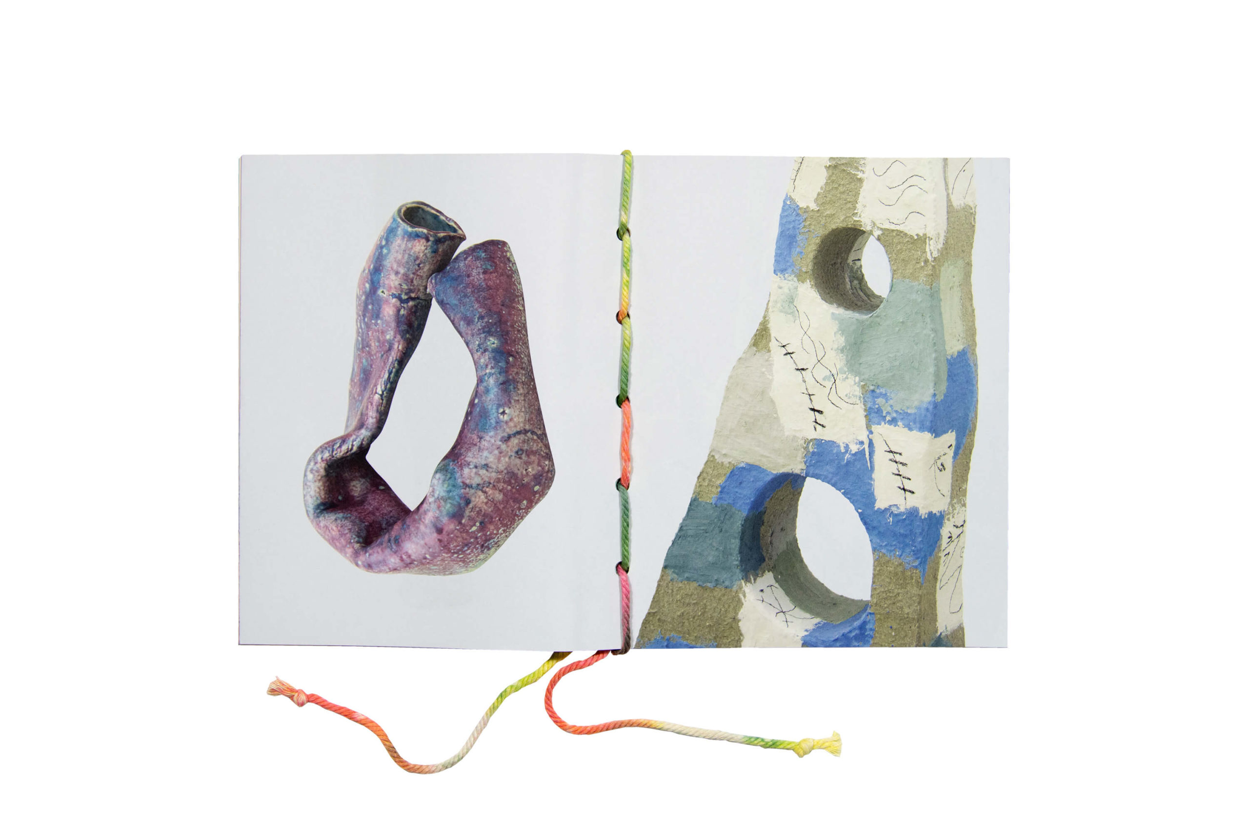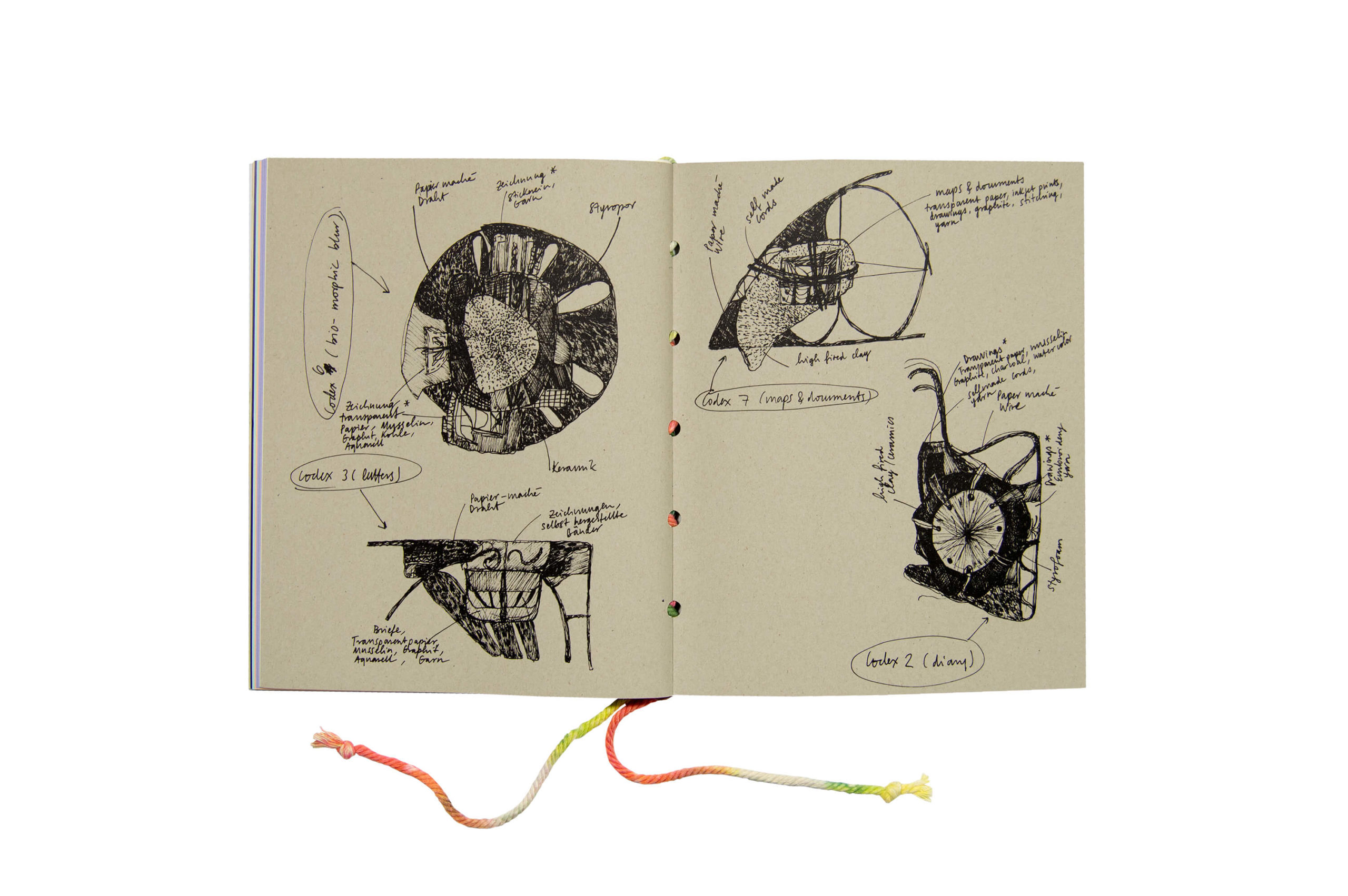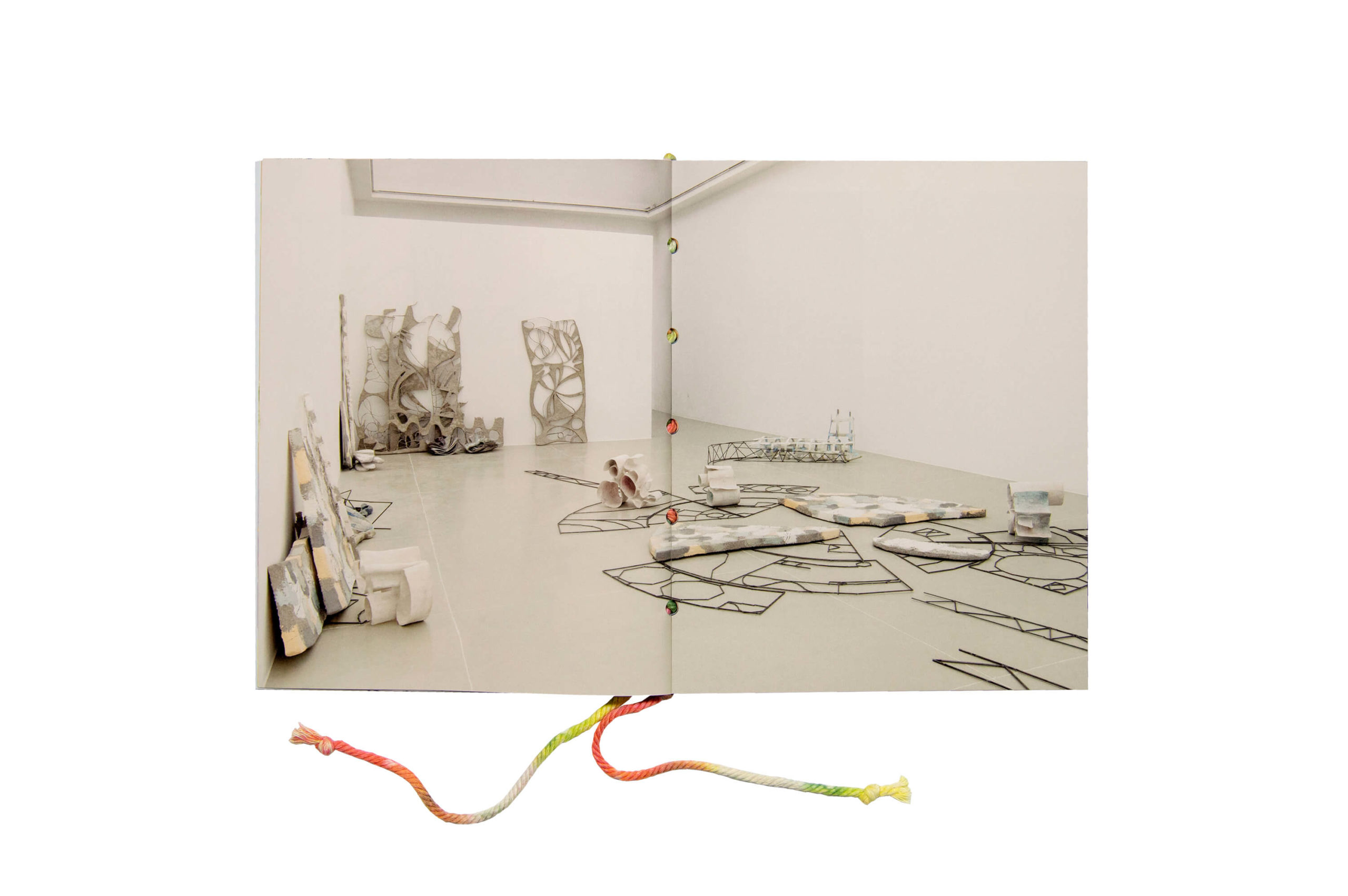 The artist book in fugue, which was produced for the exhibition of the same name at the Kunstverein Hannover, is the first comprehensive publication on the artist Isabel Nuño de Buen. The book develops a parallel narrative to the exhibition by presenting the works through a subjective cataloguing system that corresponds to the central elements of her practice: intuition, improvisation and process-based thinking between drawing, sculpture and installation. Exhibition views are combined with a re-imagination of the works within the space of the book, bringing together photographic reproductions with drawing and colour. The stitch binding technique of the book was specially developed and is partly handmade by the artist. The publication provides a profound insight into the artist's multi-layered oeuvre, which oscillates between sculpture, installation, and drawing and focuses on a fascinating subjective world of forms and thoughts.