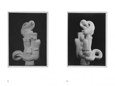 Throughout his artistic career, Jean Chauvin obsessively photographed his sculptures, and granted these images a certain autonomy. In his photography, Chauvin applied a documentary aesthetic, by which all factors that would project his personality are supposed to vanish in the interest of displaying the sculpture alone, stripped of all circumstance or context. In order to delicately magnify the contrast of light, shadow, colour and material, the works are placed against a solid black or white background in a highly illuminated space. A subtly balanced play of light and shadow reveals graceful surface details and planar shifts.
