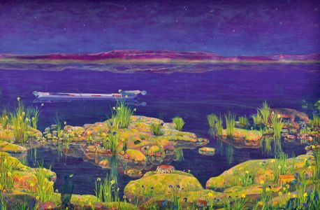 Born 1993 in Zurich, Andriu Deplazes lives and works in Zurich, Brussels and Marseille. His paintings create a kind of parallel cosmos that questions the habitual ways of seeing and expectations of the beholder. Wide landscapes in colourfully powerful large format are the setting for curious characters who sometimes melt into the vegetation around them or appear strangely remote from it. His work has been exhibited throughout Europe since 2015.