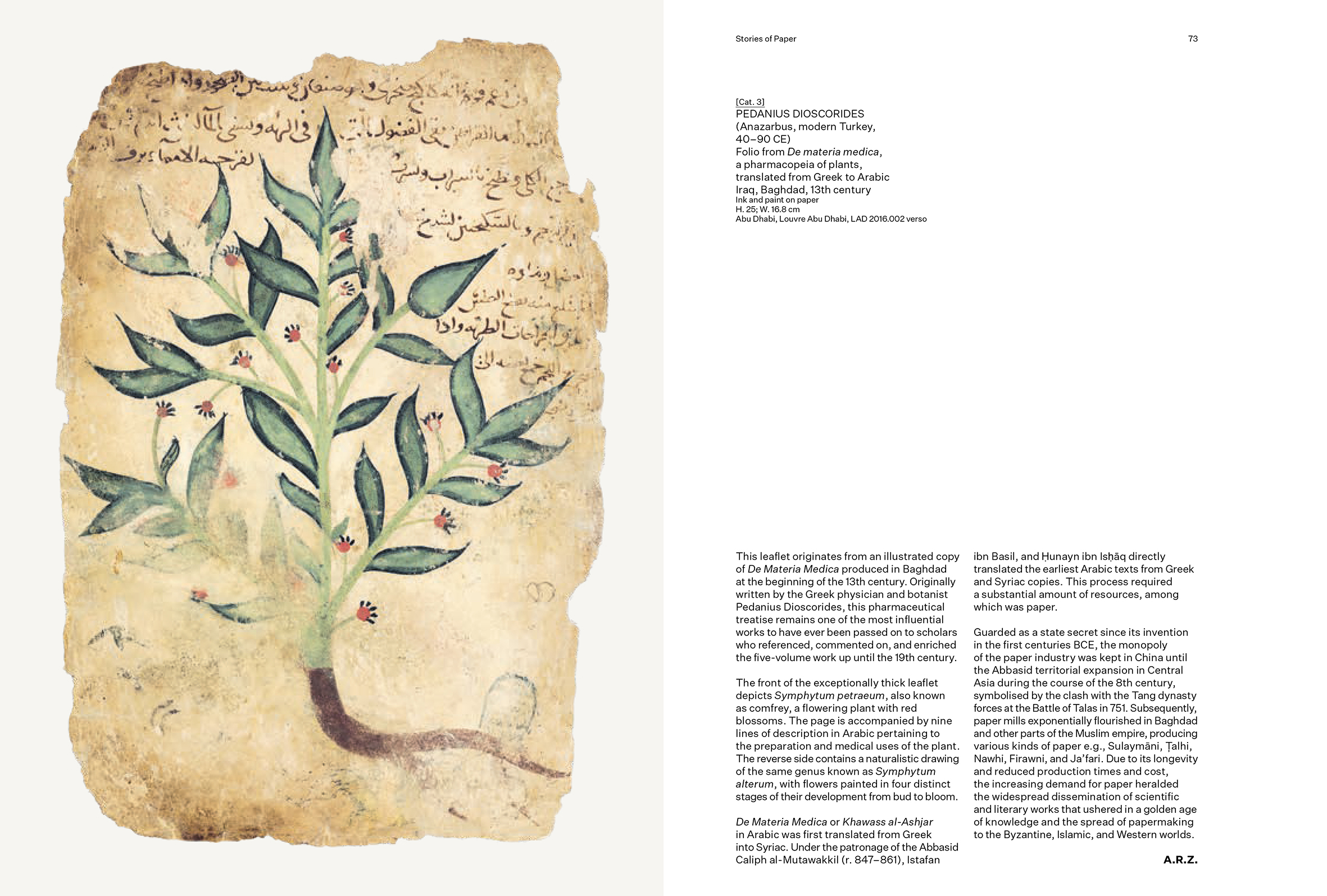This catalog accompanies the 13th temporary exhibition of the Louvre Abu Dhabi with Louvre Paris. From manufacturing to circulation as well as technical progress, the book highlights the many aspects of this familiar material, which is now being replaced by digital technology in all aspects of our daily lives. By exploring the different plants from which it originates, as well as the numerous aspects from which its production emanates, the diversity of the artworks on display invites to discover the multiple uses of paper as a medium for creativity, ideas, and exchange over the centuries and throughout cultures.
