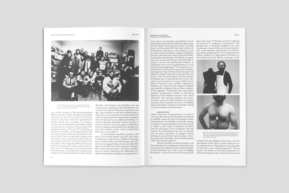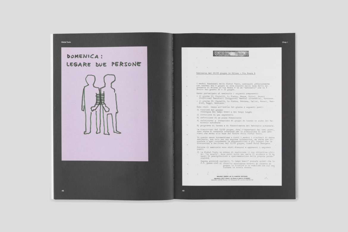 Global Tools 1973–1975 documents and narrates the story of the eponymous experience of Radical Design and its multidisciplinary school program "without students or teachers."