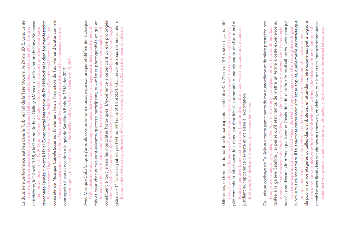 Otto Muehl). He has done this through his knowledge of and interest in different disciplines: editing books, curating art exhibitions, being an events creator, lecturing, establishing catalogue raisonnés and bibliographic databases, creating radiophonic works, being an art critic, a filmmaker, and a publisher, with Editions Derrière la Salle de Bains or for his own editions: