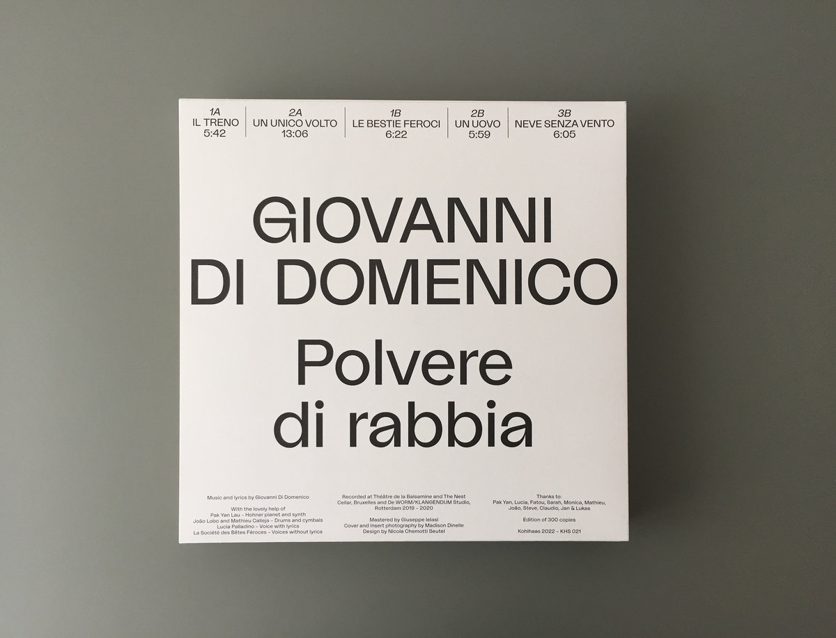 Polvere di rabbia was recorded between Brussels and Rotterdam and comes in a 12" LP wisely mastered by Giuseppe Ielasi.