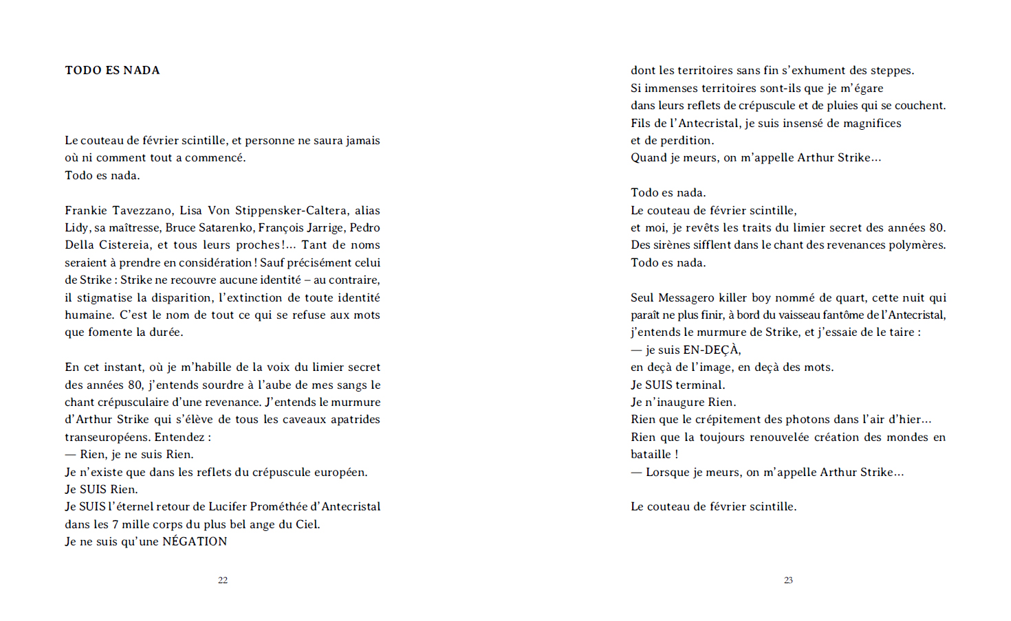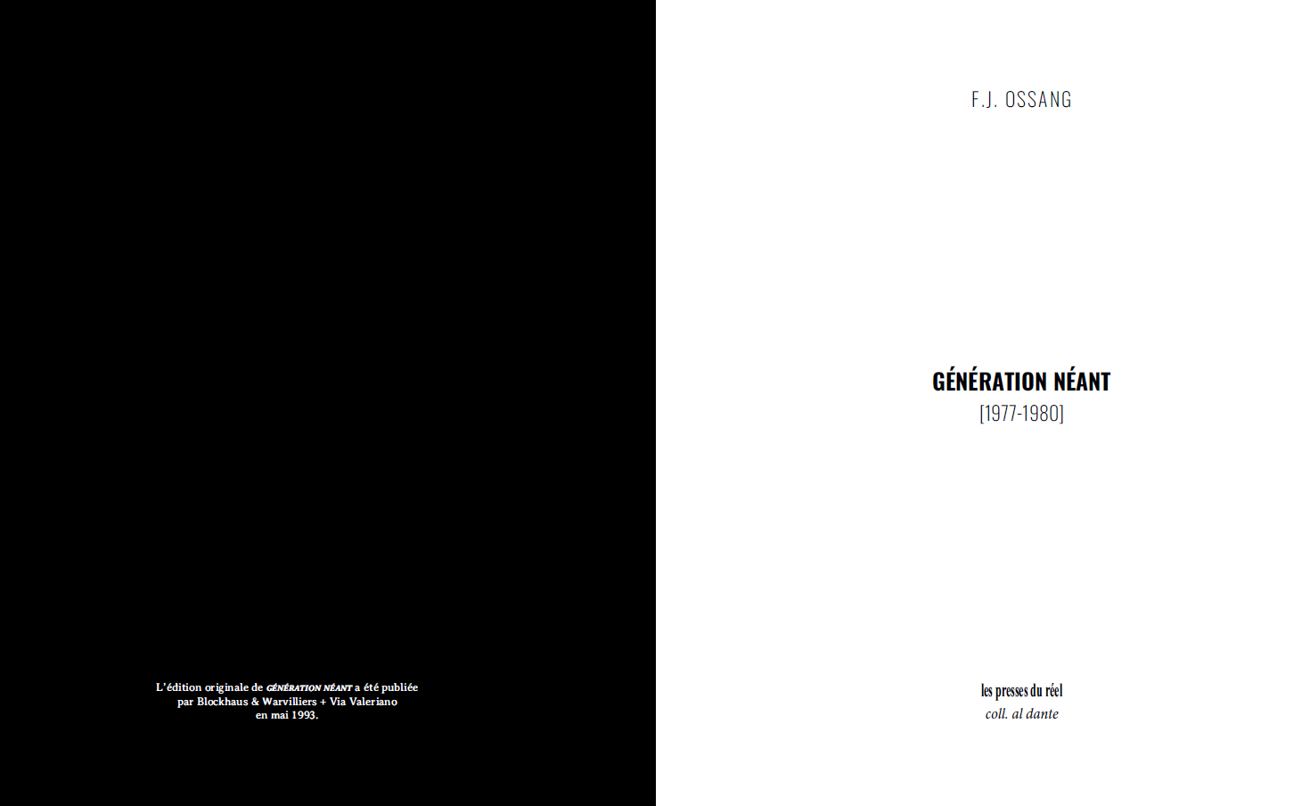 Reissue of the cult punk book by the transgender artist (filmmaker, musician, poet, writer...) Ossang, written in 1980 and first published in 1993, now impossible to find.