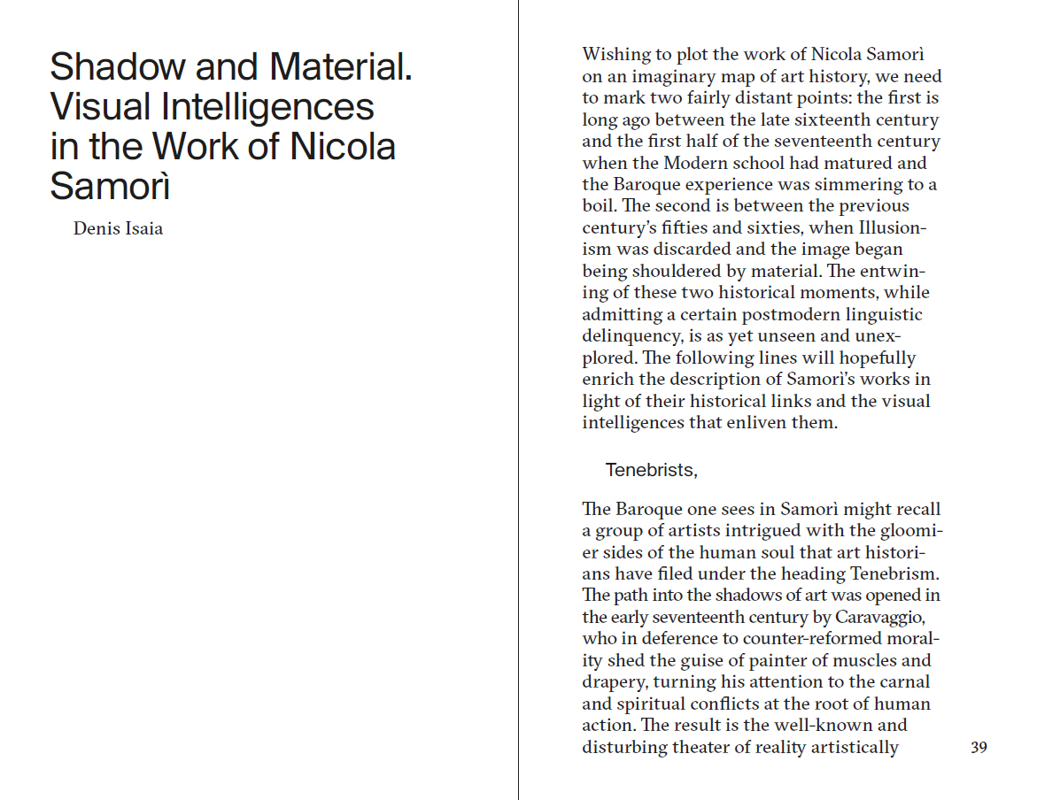 The book presents sixty color reproductions of Nicola Samorì's works, accompanied by critical essays by Vittorio Sgarbi and Denis Isaia.