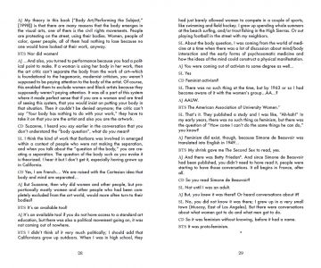 A history of feminist gesture and performance since the 1960s and 1970s in California through an interview conducted by Carole Douillard with art critic Amelia Jones and two pioneering American artists, Barbara T. Smith and Susan Lacy.