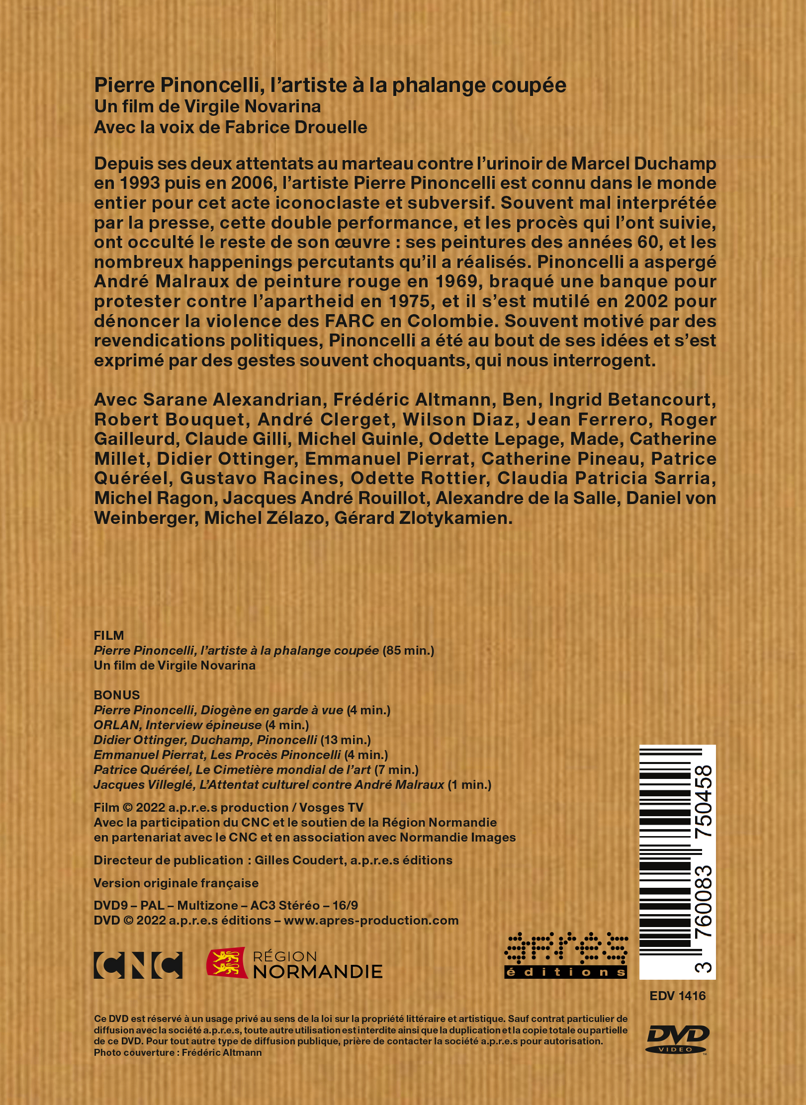 A documentary film made over 10 years by Virgile Novarina, portraying the iconoclastic artist Pierre Pinoncelli, known since the 1960s for his shocking happenings.