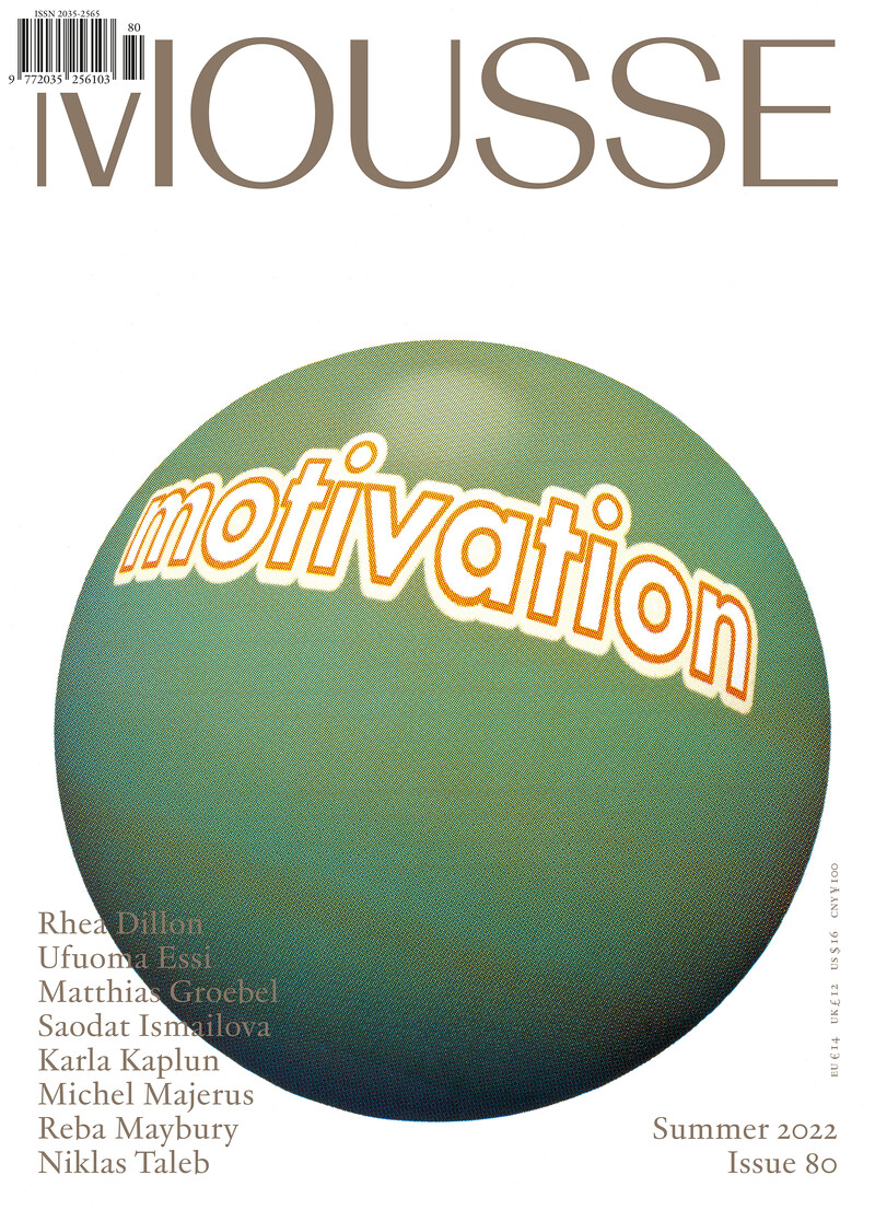 Mousse contains interviews, conversations, and essays by some of the most important figures in international criticism, visual arts, and curating today, alternated with a series of distinctive articles in a unique tabloid format.