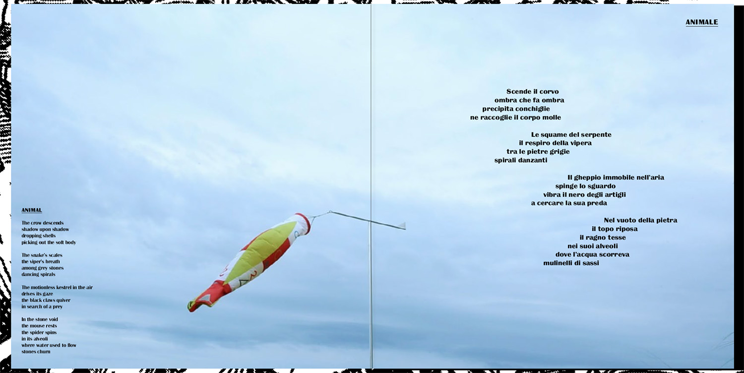 The publication contains texts by Claudia Losi; written following the collective experience of the "laboratori camminati" which involved different guests and local hiking groups on each instance to collect a variety of "views." The writing contains a variety of possible readings. The words put together by the artist as such become a storyline, based on the collected material and the shared walking experiences they are woven together from the vegetal, animal, human, as well as the geological and atmospheric realms. Furthermore, the words are inspired by works songs, women's songs in particular, in which the words form a "mapping" of the landscape through "the voices of the human beings who are part of it."