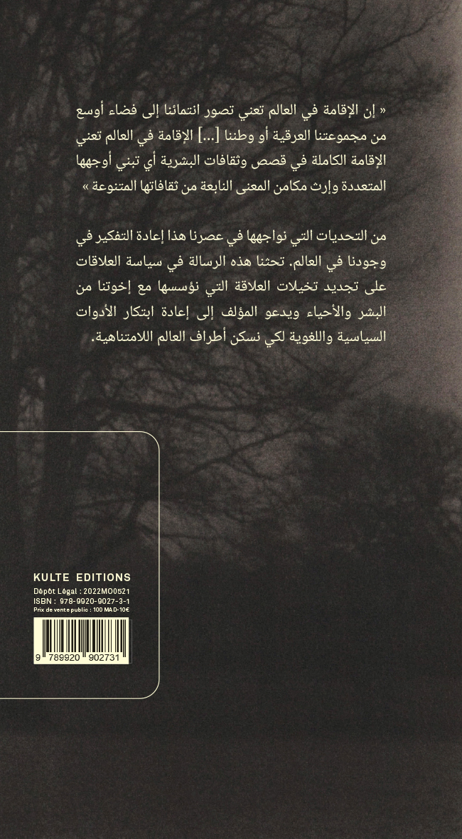 An essay on relational politics (the Arabic edition of Felwine Sarr's book).